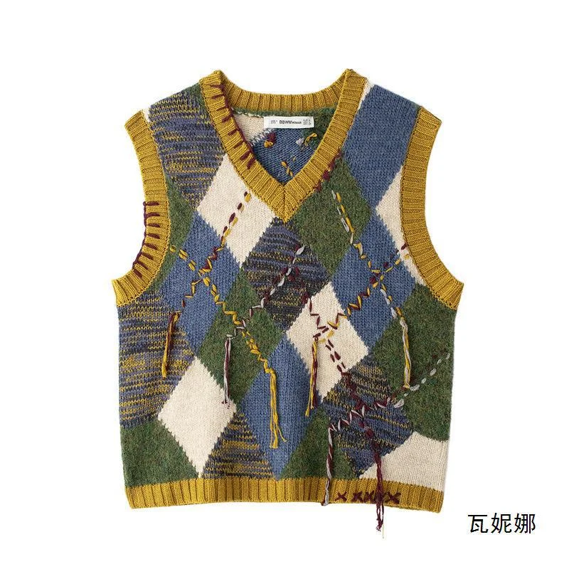 Nigikala Nigikala 2025 Autumn New Women's Fashion Street V-Neck Sleeveless Rhumin Syringe Vest