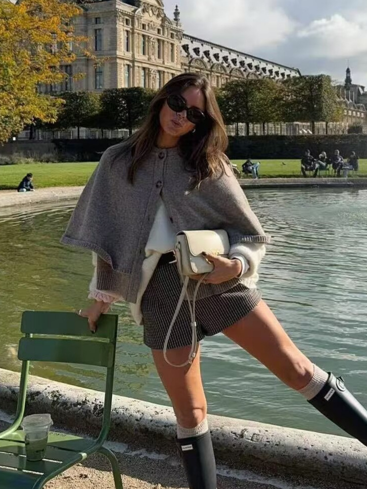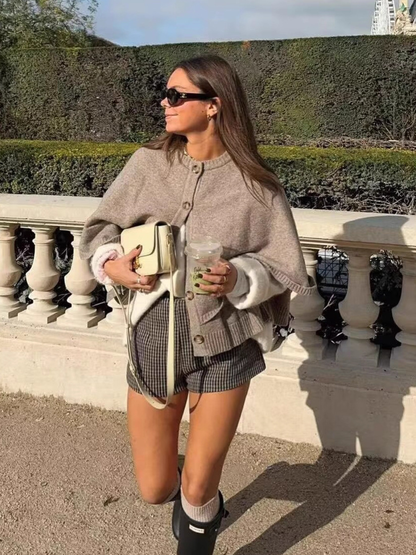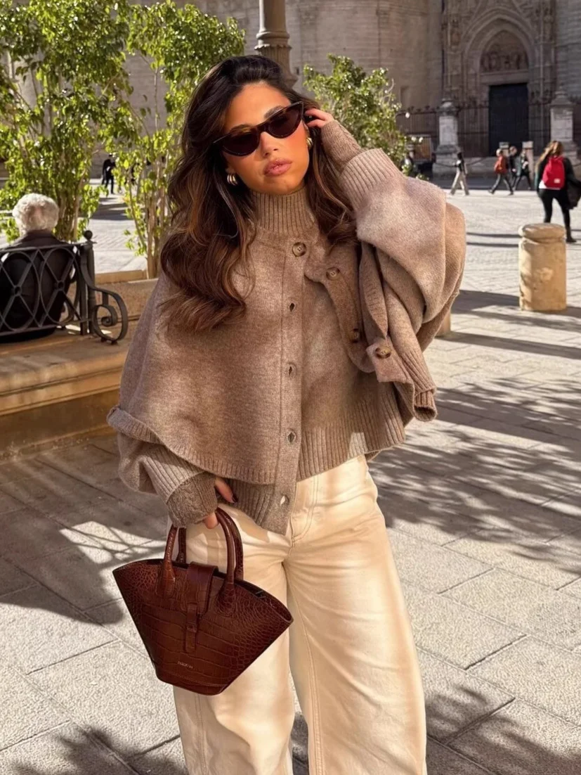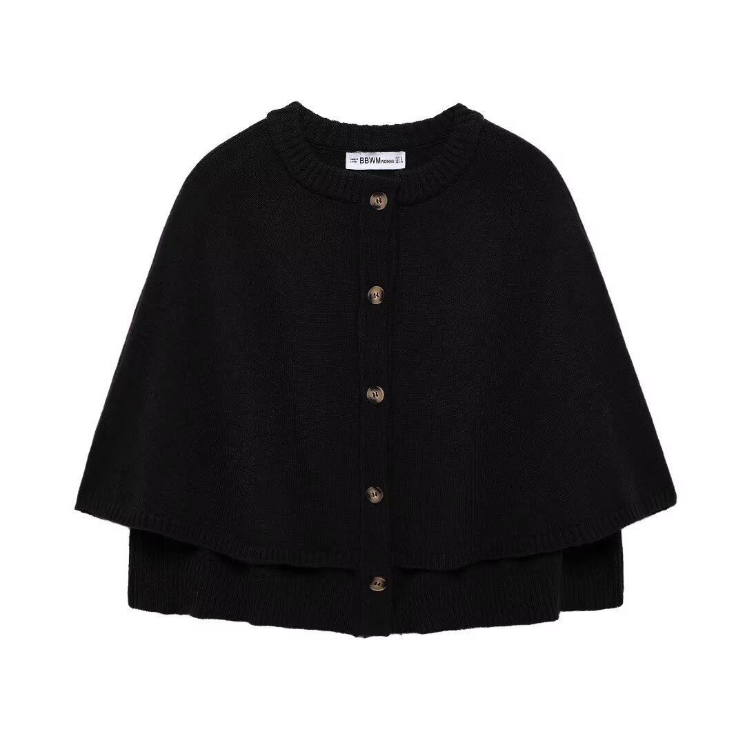 Nigikala Nigikala 2025 Fashion Knitted Round-Necked Shawl Cape Design Woolen Sweater Women's A35618