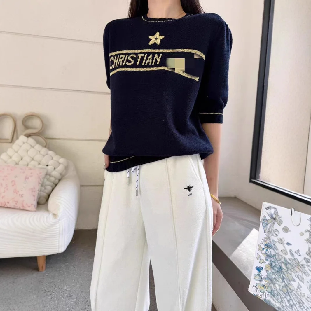 Nigikala Nigikala 2025 New Five-Horned Star Letters T-Frek Short-Sleeved Women's Sweater Sweater Slimming Slimming
