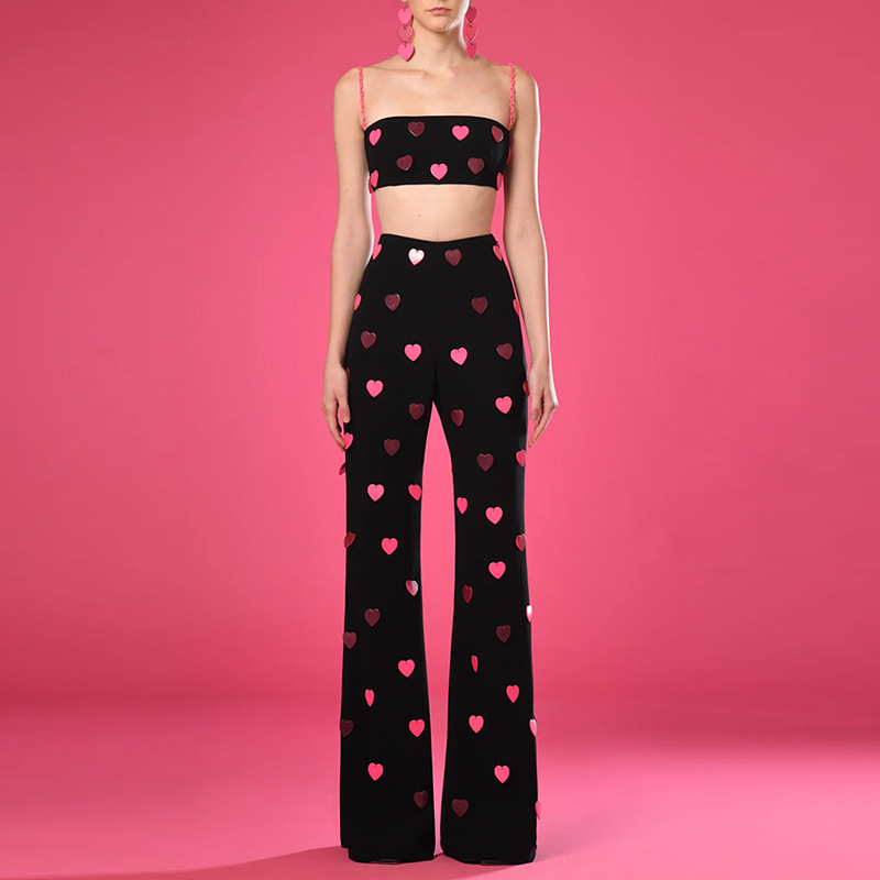 Nigikala Nigikala 2025 New Star Fashion Heart Shaped Liange带 Vest Pants Set Two-Sleeve