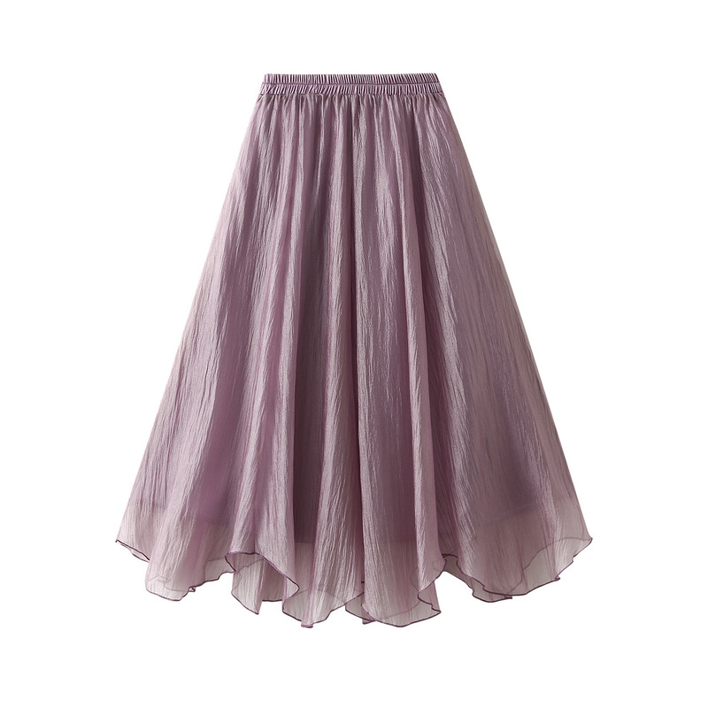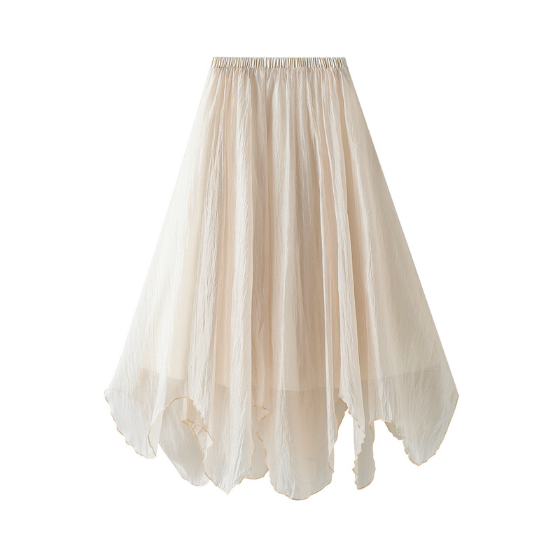 Nigikala Nigikala A Word Half-Dress Woman 2025 New Medium Long Gentle Fairy Yarn Skirt Wave Hem 2139