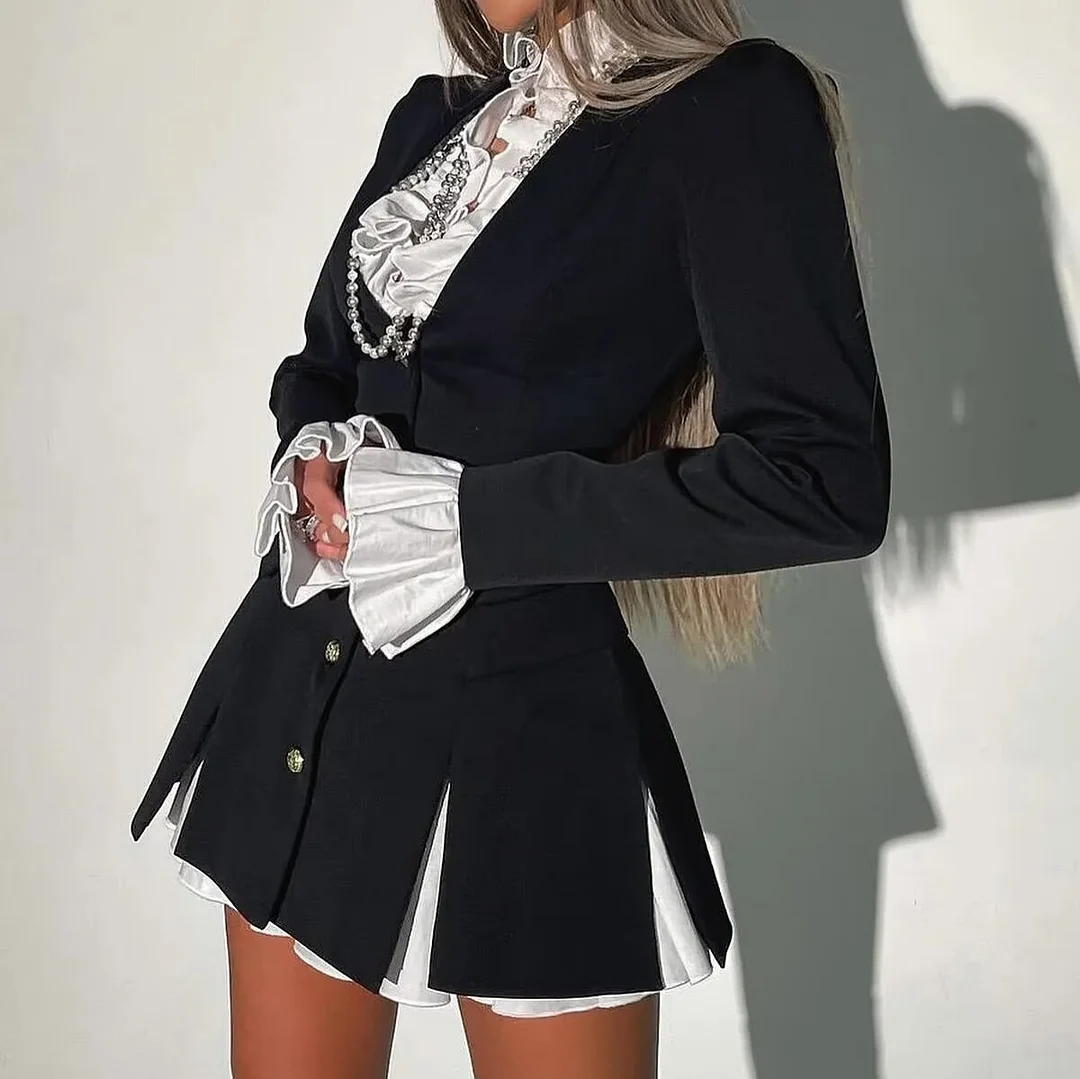 Nigikala Nigikala And Autumn Long Sleeve Splicing Solid Color Button A Word Fake Two-Piece Shirt Skirt New Woman
