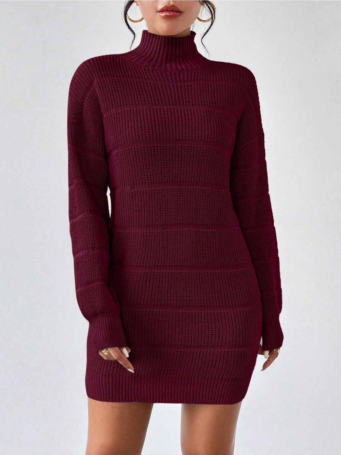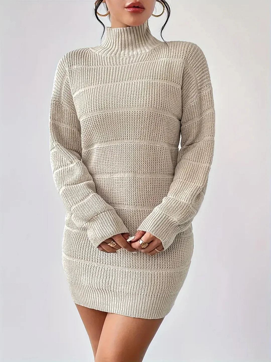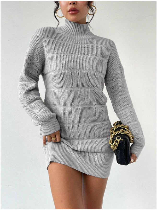 Nigikala Nigikala And Winter Half-High Collar Knitted Dress Women's Fashion Pure Color Sexy Bag Ass Skirt