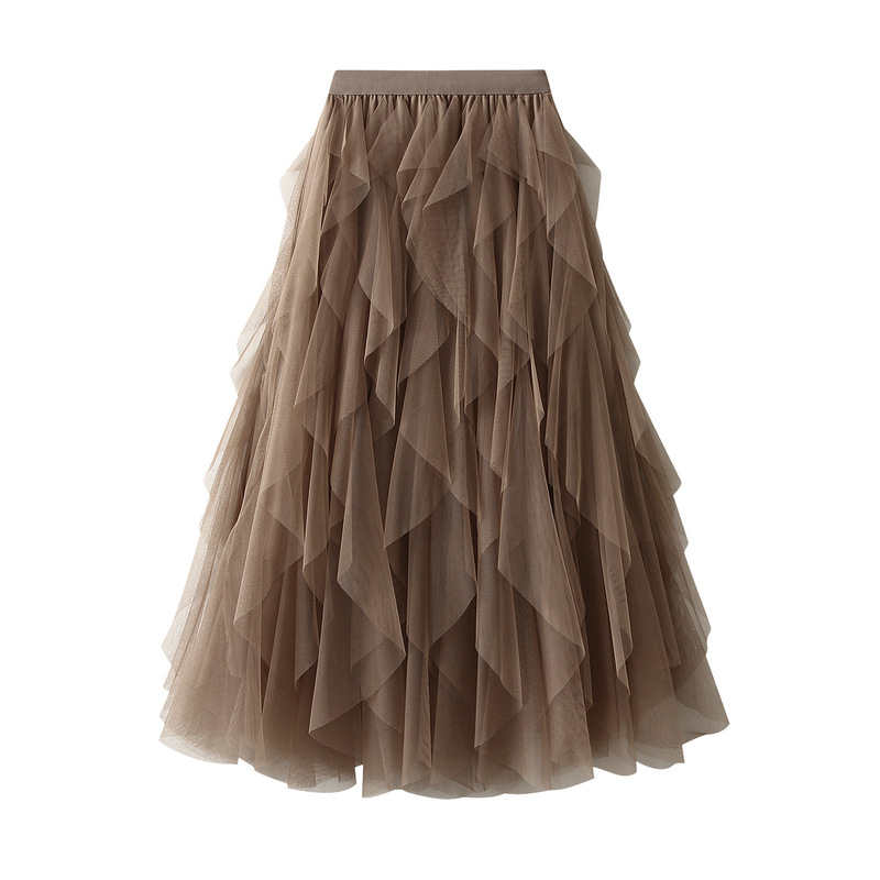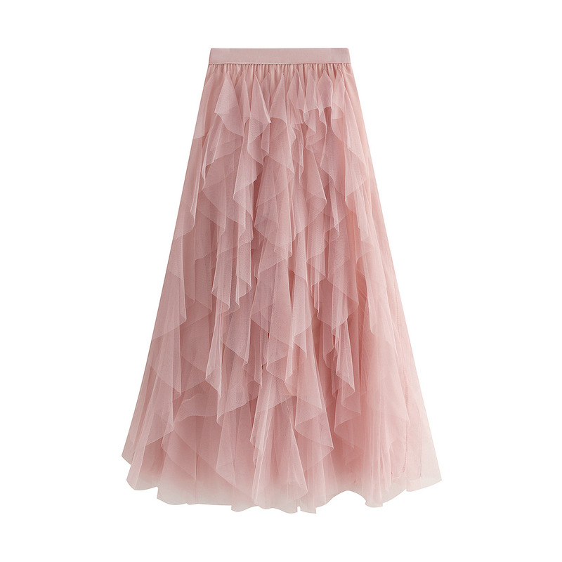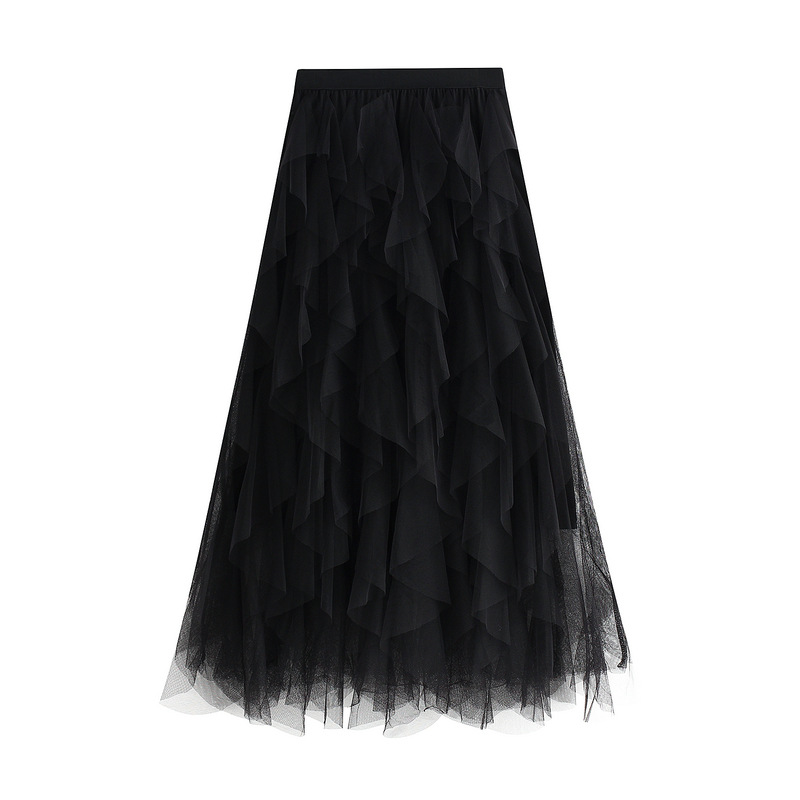 Nigikala Nigikala And Winter Korean Version Of Tight Waist Fashion Splicing Thin Mesh Splicing Irregular Long Waist Half-Body Skirt 8868