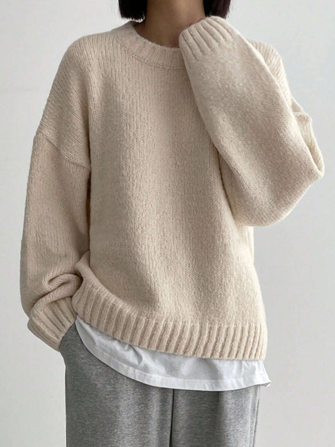 Nigikala Nigikala And Winter Languid Wind Round Collar Plus Thick Solid Color Knitted Women's Autumn And Winter European Hood Long-Sleeved Sweater Top