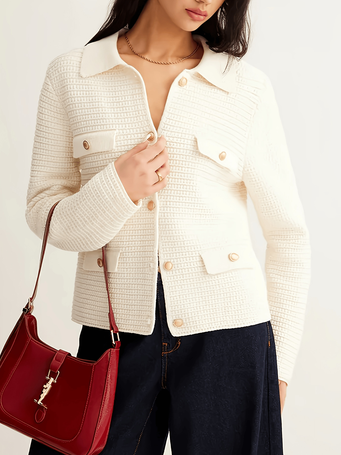 Nigikala Nigikala And Winter New Metal Buttons Casual Elegant Knitted Cardigan Sweater Women's Clothing