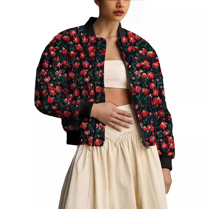 Nigikala Nigikala Autumn And Winter Dais Dais Dais Printing And Dye Pocket Zipper Short Flight Jacket Cotton Clothes Women WQK0501