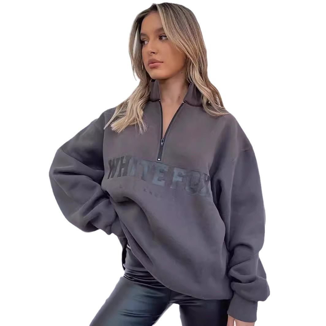 Nigikala Nigikala Autumn And Winter New Leisure Half-Necked Zipper Print Long-Sleeved Jacket