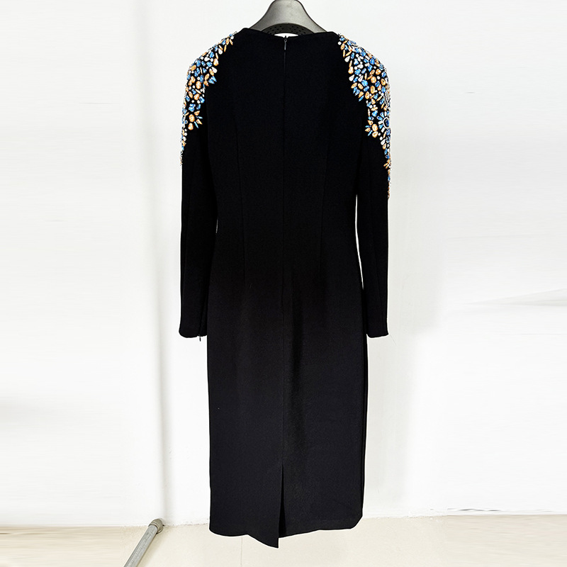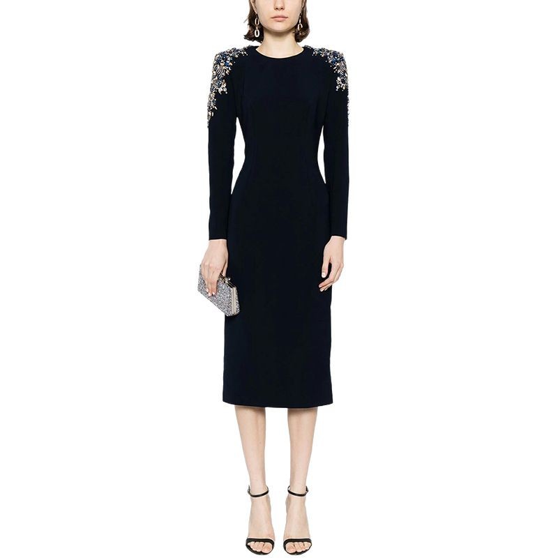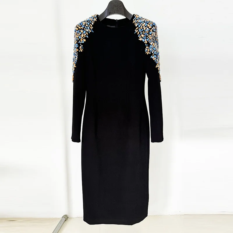 Nigikala Nigikala Autumn And Winter New Star Fashion Heavy Industry Nails With Long Sleeves Long-Sleeved Long Dress