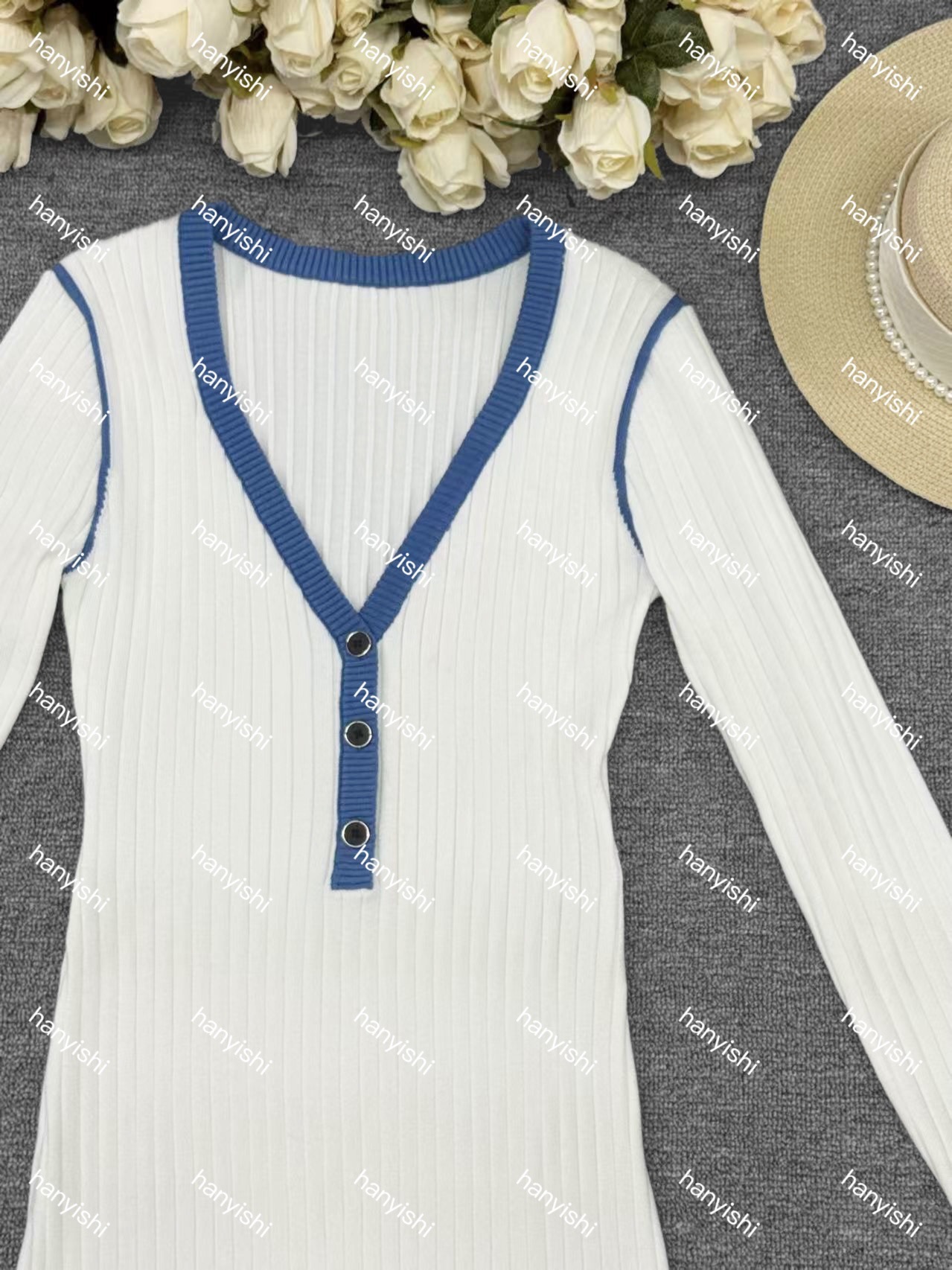 Nigikala Nigikala Autumn And Winter Women's Elegant Long-Sleeved Knitted Dress V-Neck Knitted Dress