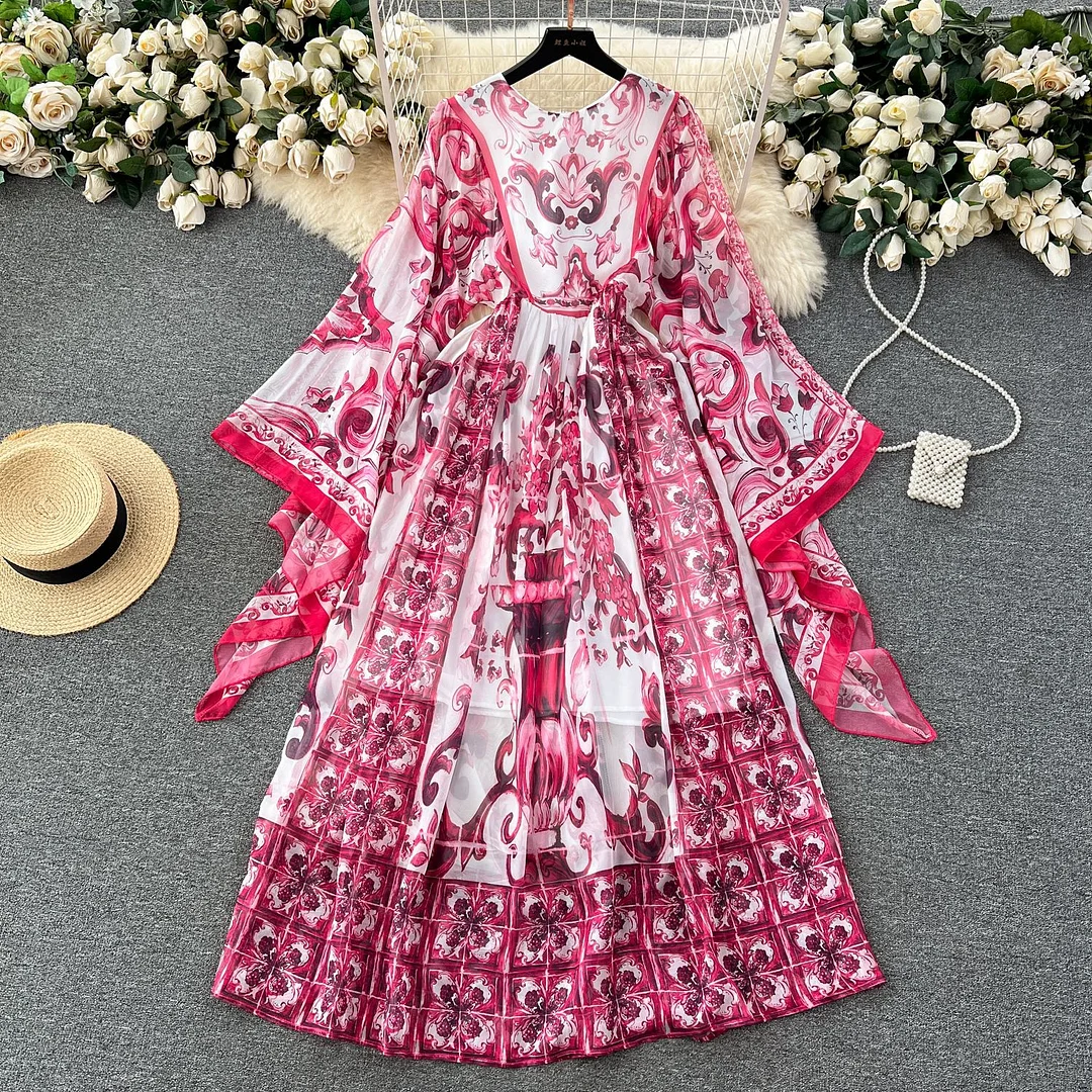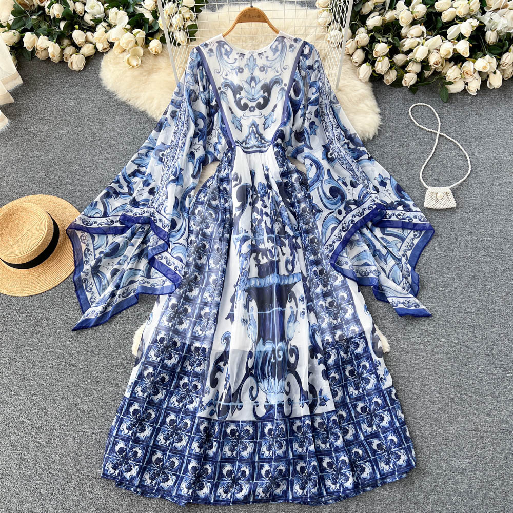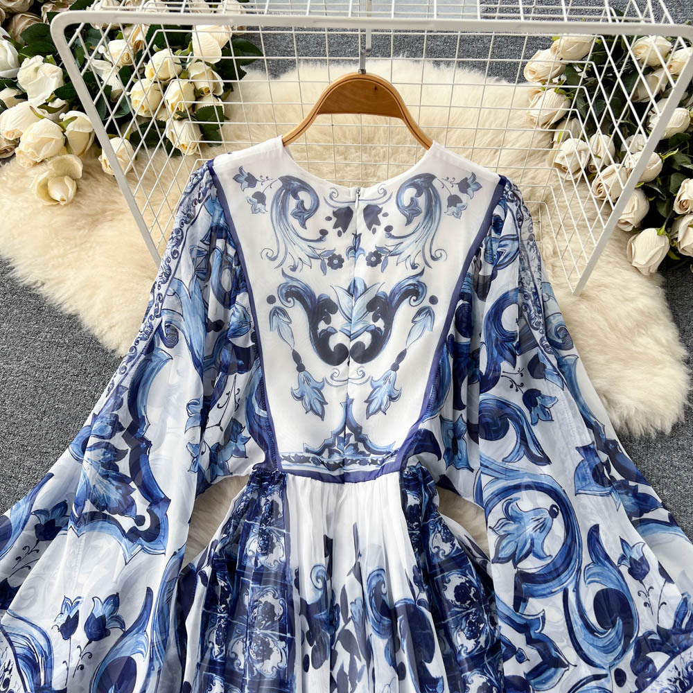 Nigikala Nigikala Autumn Dress New 2023 Small Design Style Holiday Style Retro Print Sleeve Chiffon Long Dress