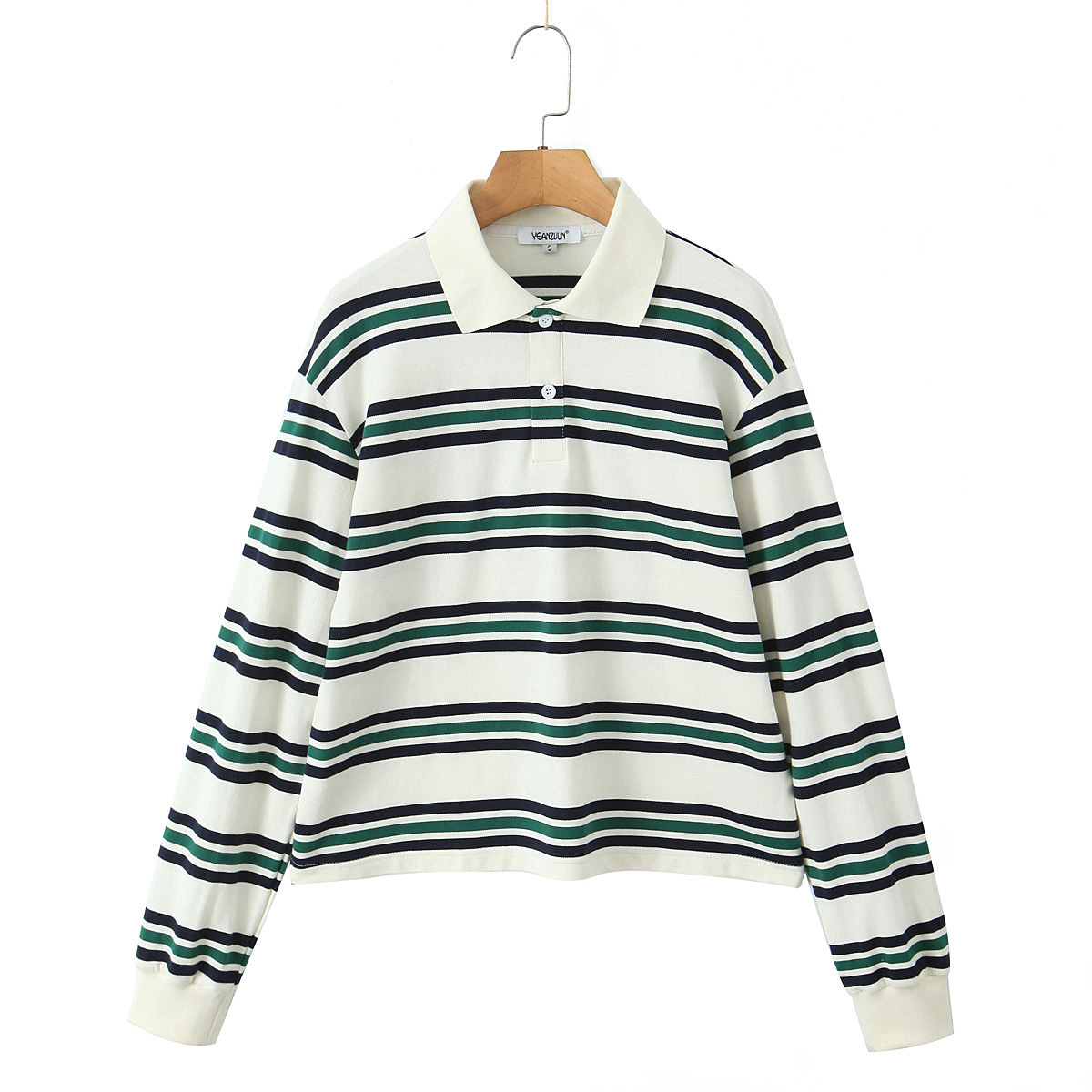 Nigikala Nigikala Autumn New Women's College Style Bumpy Horizontal Striped POLO Shirt Long-Sleeved T-Shirt Girl
