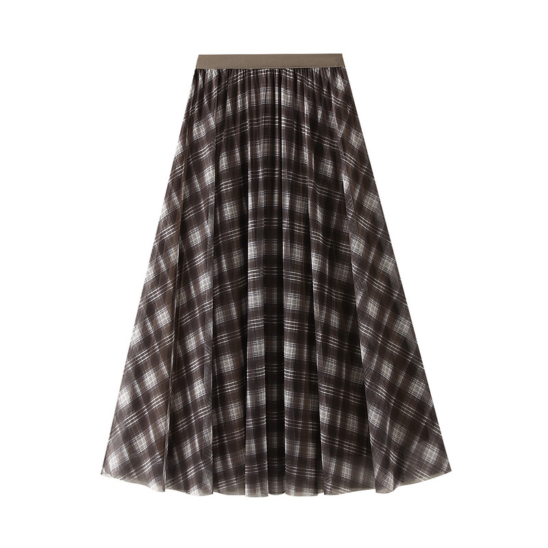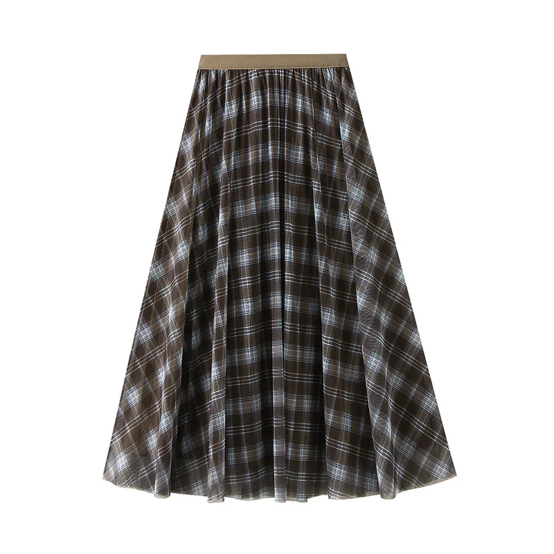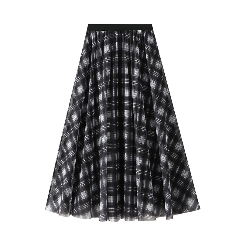 Nigikala Nigikala Both Sides Of The Retro Lattice Yarn Irregularly Dressed Skirt In The Long A-Shaped Dress Autumn 8608