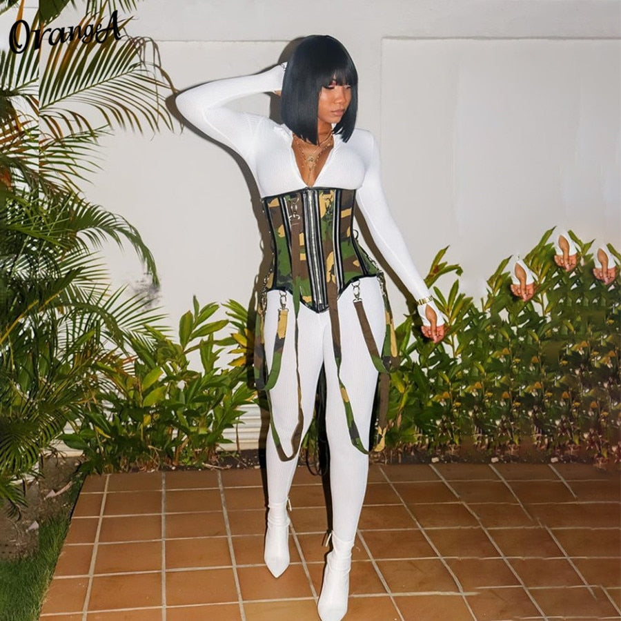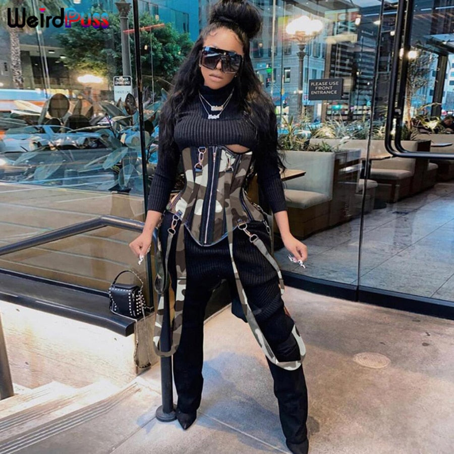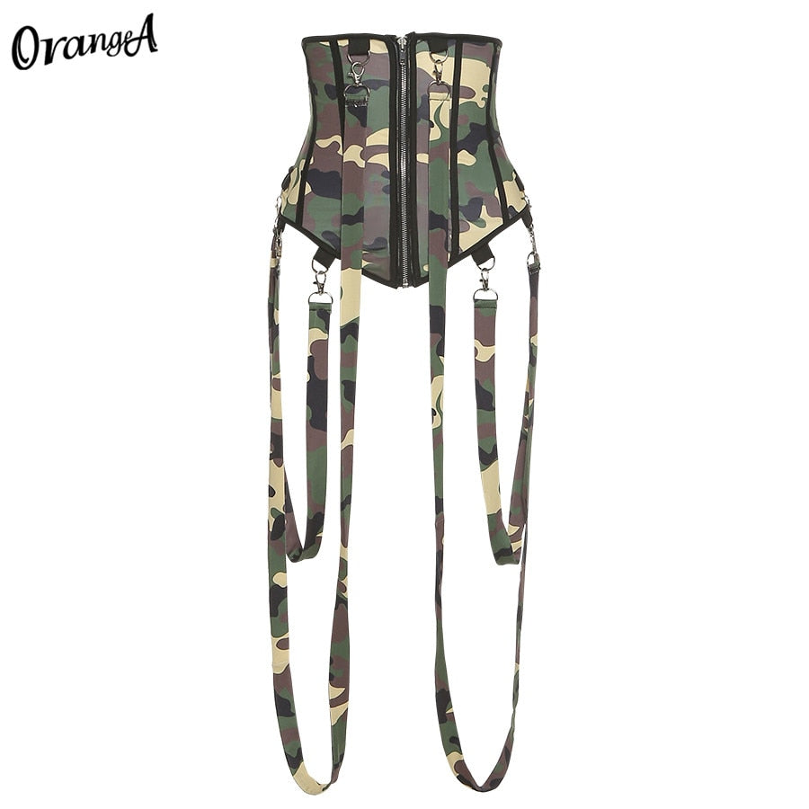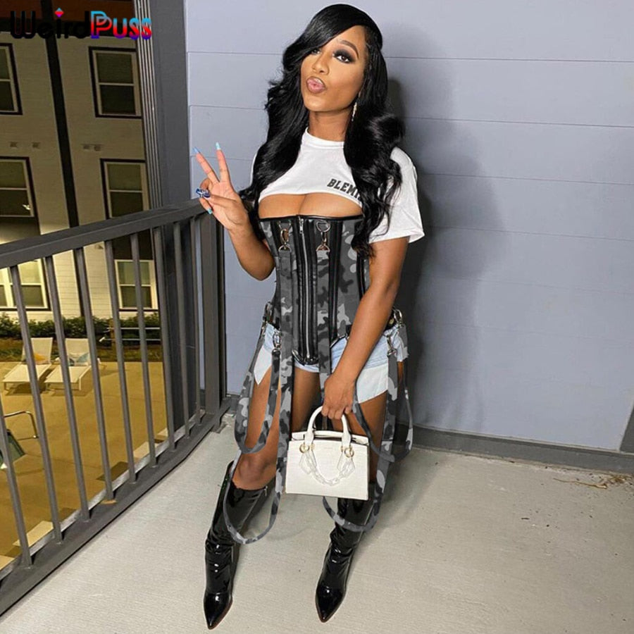 Nigikala Nigikala Cotton Women Camouflage Sling Corset Sleeveless Skinny Zipper Sexy Tank Top Asymmetry Party Clubwear Hot Street Outfits 1127-0