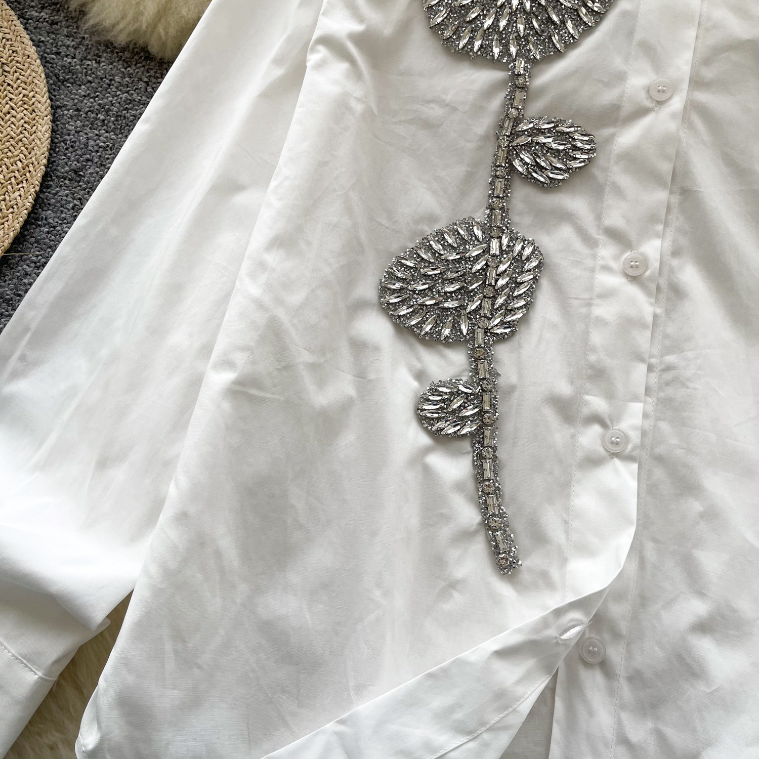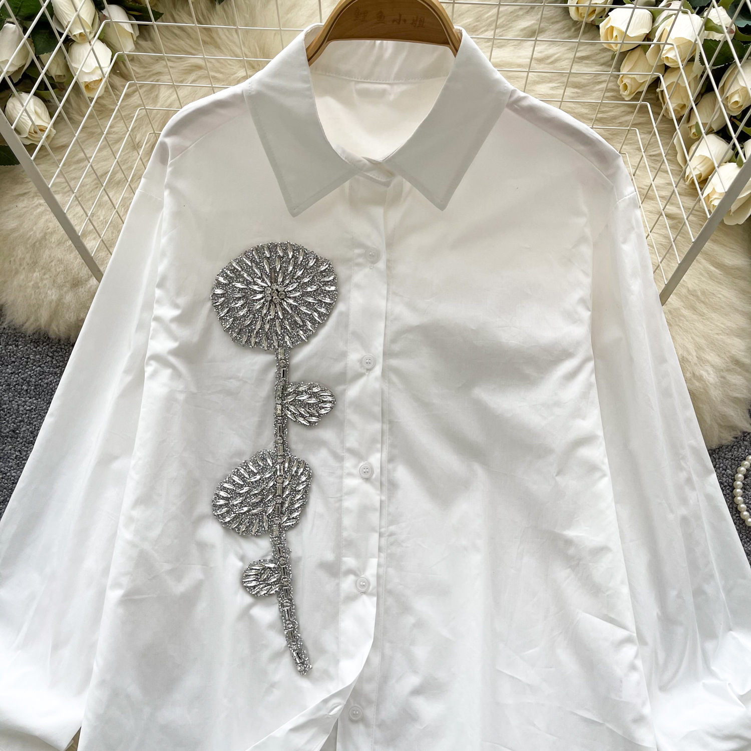 Nigikala Nigikala Day Shirt Women 2025 New French Heavy Industry Diamond Three-Dimensional Flowers Loose Thin Single-Drilled Chic Shirt