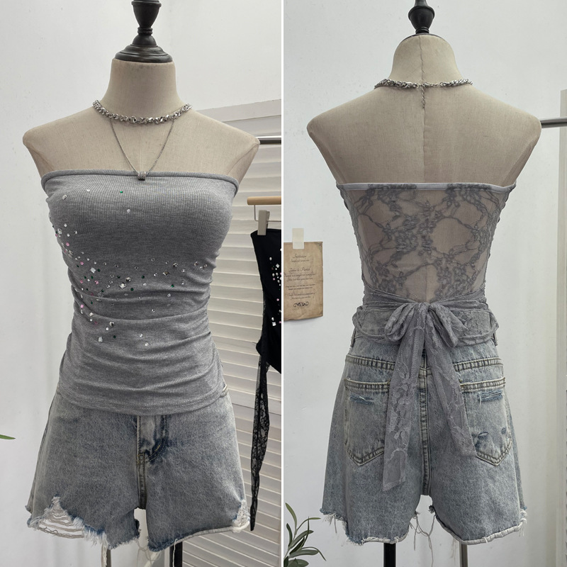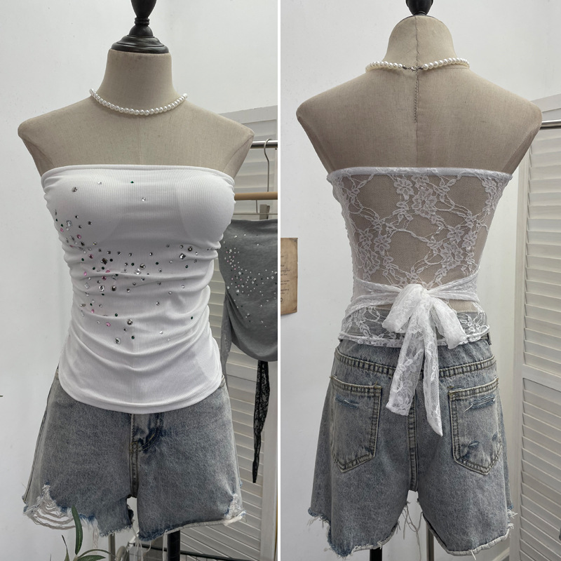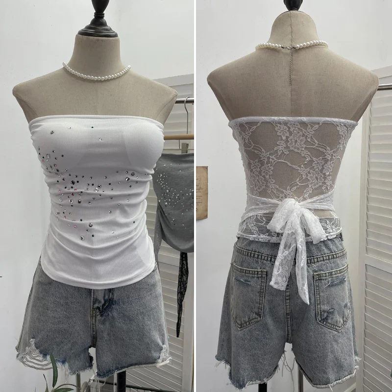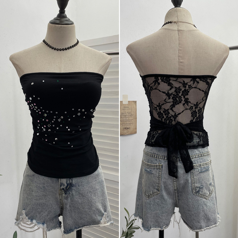 Nigikala Nigikala Diamond Splicing Lace-Back Strapped Braided Braided Braided Brae Folded Bra Sleeveless Top 1196