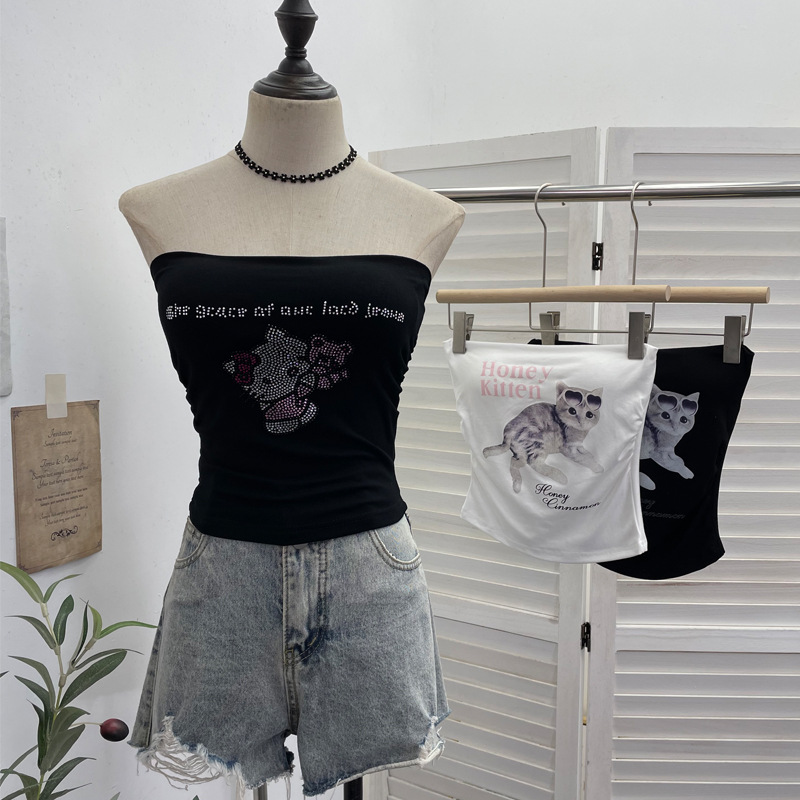 Nigikala Nigikala Diamond Tector Tset Coat Outside Wearing Bra Mat Babes Wrapped Bra Short Open Umbilly Printed Vest 8031