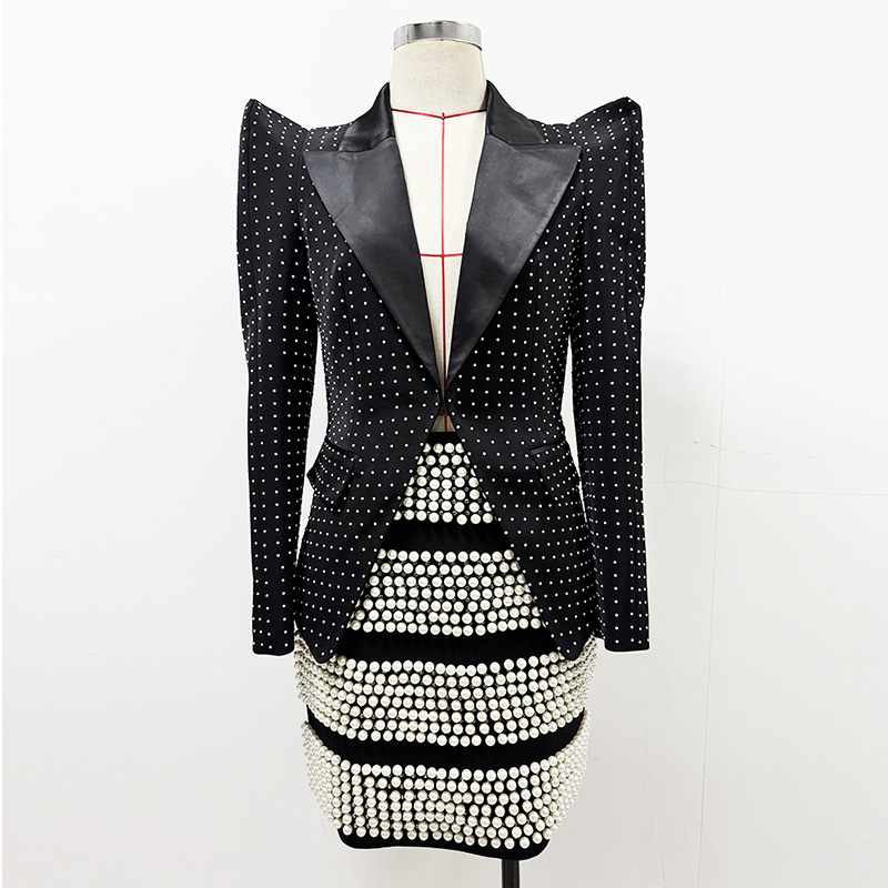 Nigikala Nigikala Early Spring New Personality Shrugging Point Suit Jacket Heavy Industry Pearl Nail Beads Half Skirt