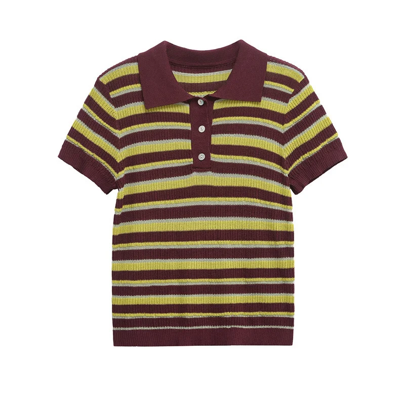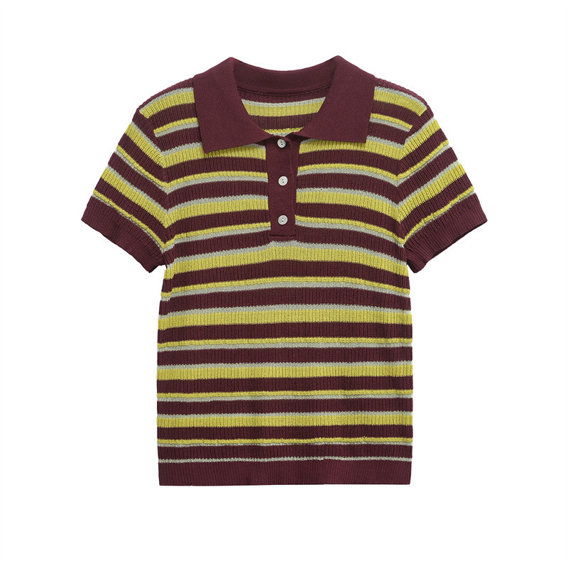 Nigikala Nigikala Euro 2025 New Fashion Women's Striped POLO Collar Short-Sleeved Top 9588032