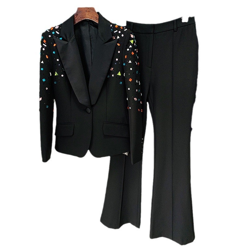 Nigikala Nigikala Fashion New Heavy Industry Nails Color Diamond Repair Suit Jacket Micro-Thorn Trousers Set Two