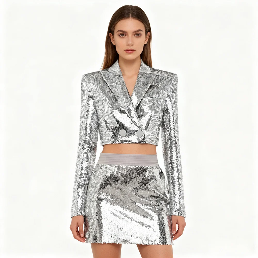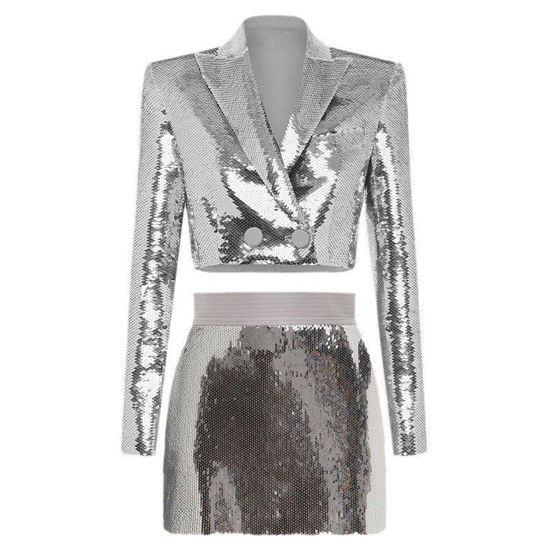 Nigikala Nigikala Fashion Personality BLING BLING Shiny Squin Short Suit Half-Swear Set Two-Sleeve