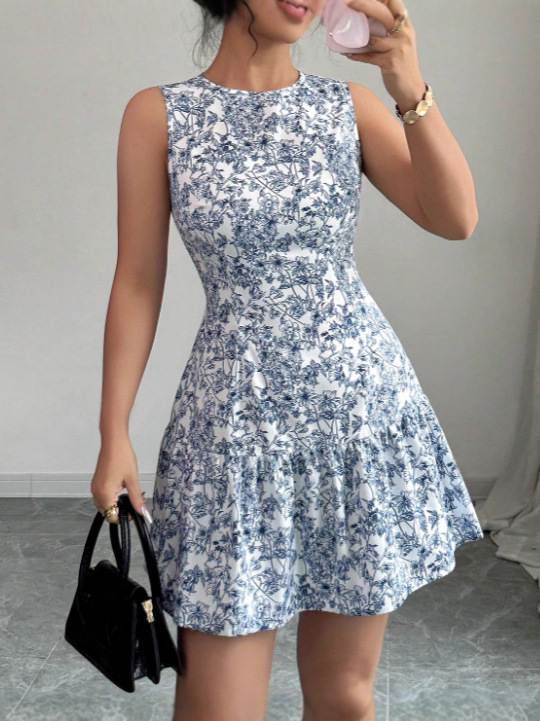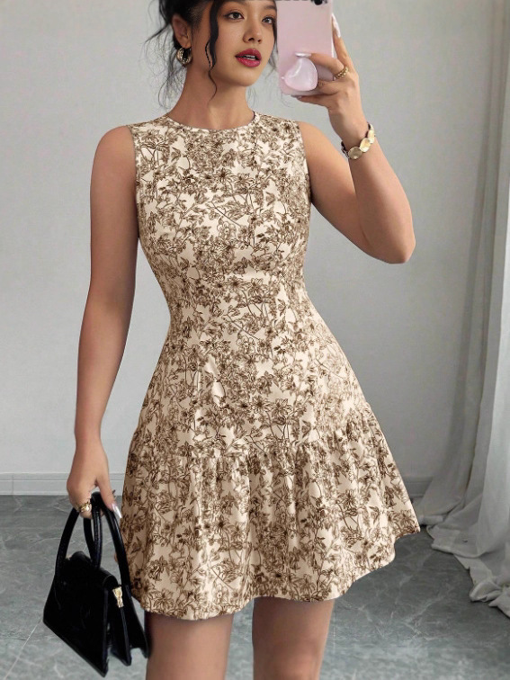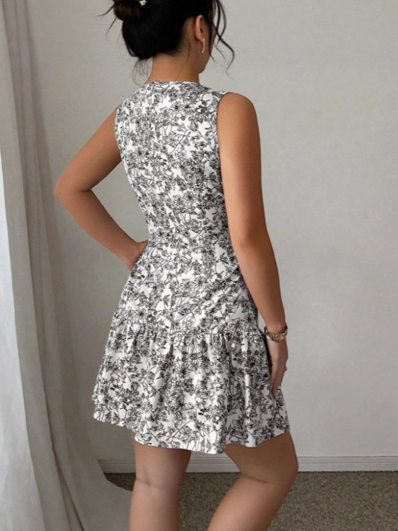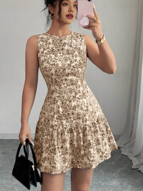Nigikala Nigikala French Elegant Floral Print Sleeveless Bundle With Mini Dress