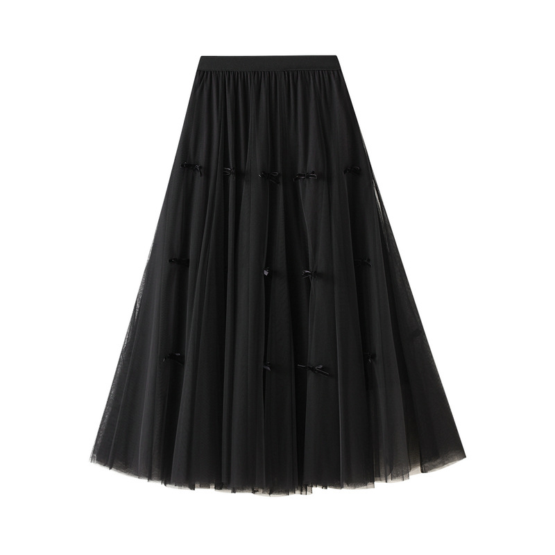 Nigikala Nigikala Gentle Fairy Design Feeling Bow Net Autumn Winter Display Thin Waist Half Body Skirt 0883