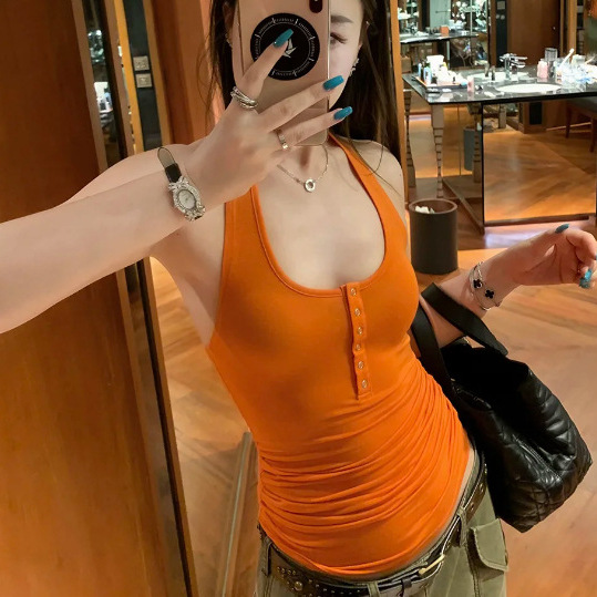 Nigikala Nigikala Girls White Hanging Neck Sling Vest Outside Wearing Women's Summer New Thin Back Shirt Long Top