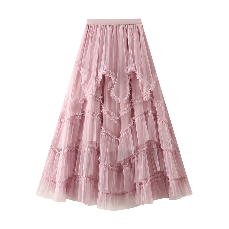 Nigikala Nigikala Half-Dress Summer 2025 New Irregular Mesh Dress With Thin High Waist Fluffy Cake Skirt D2507