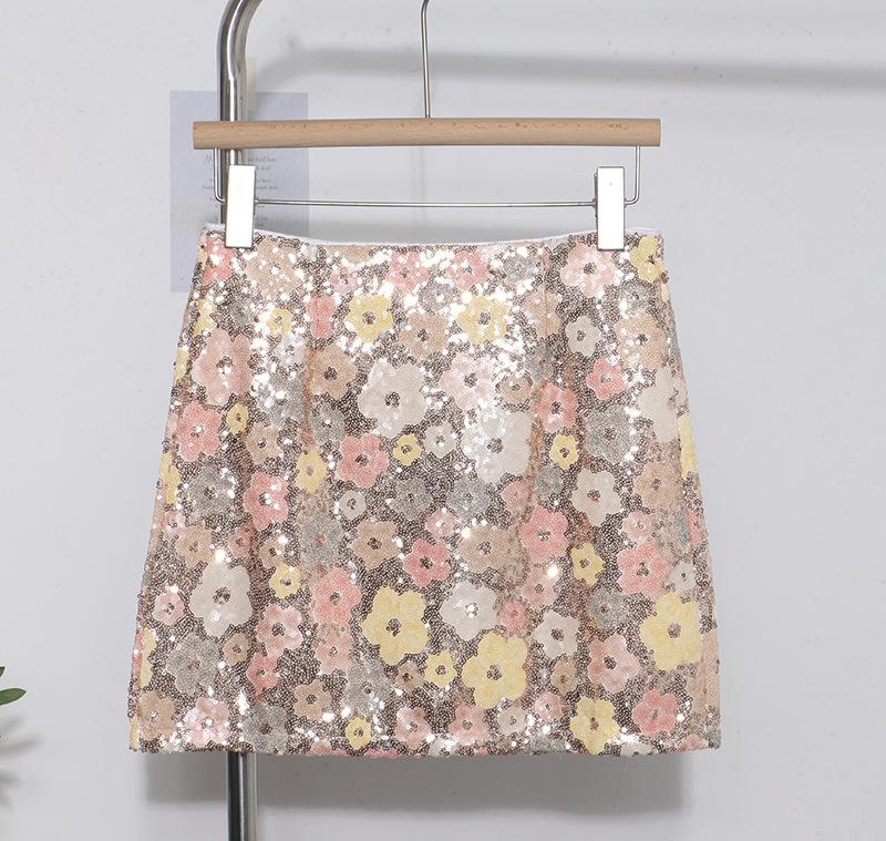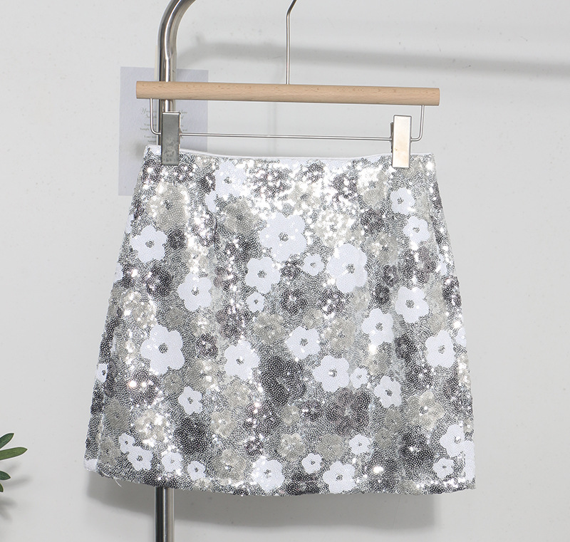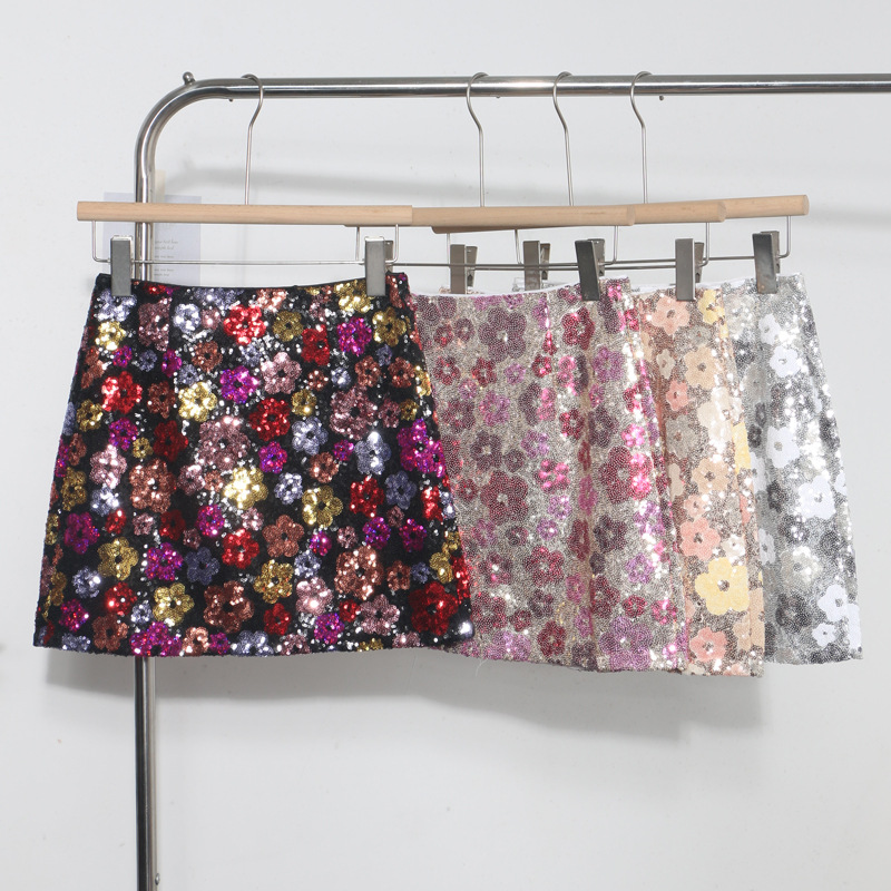 Nigikala Nigikala Heavy Industry Lighting Flowers A-Word Skirt High Waist Thin Ass Anti-Light Short Skirt Women 8158