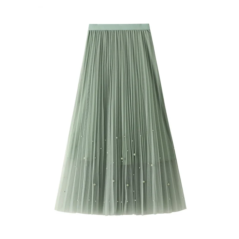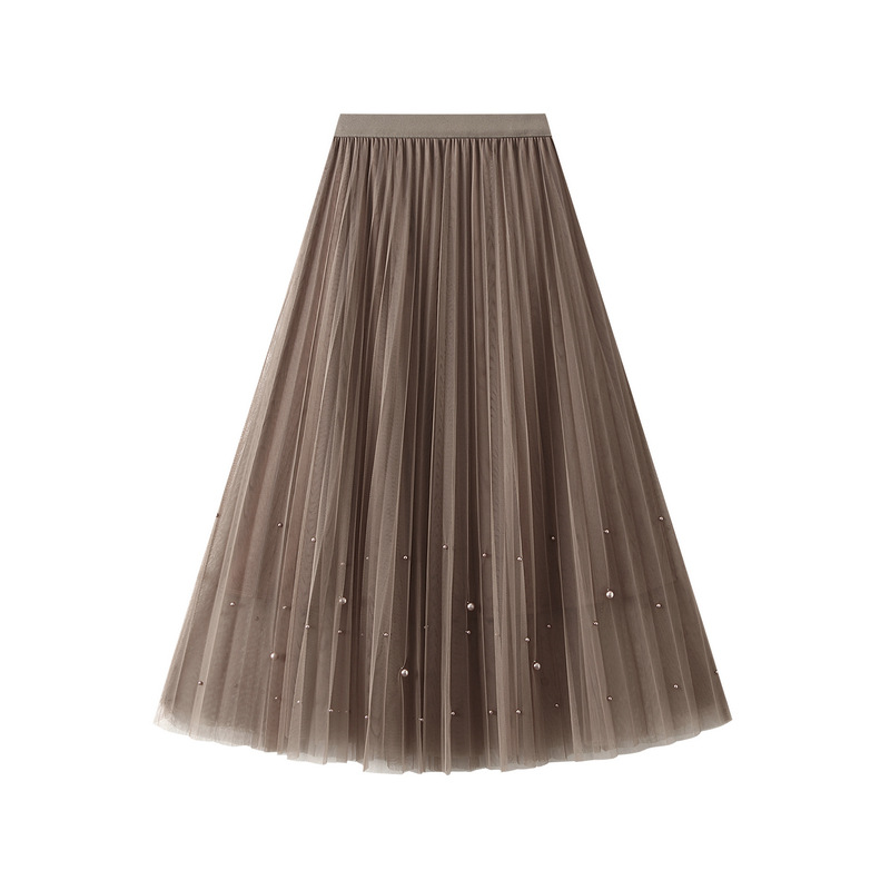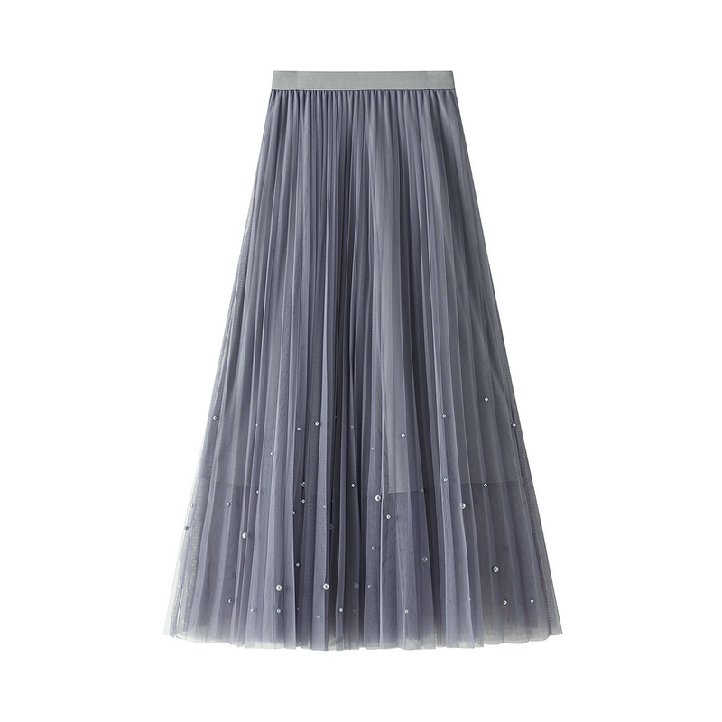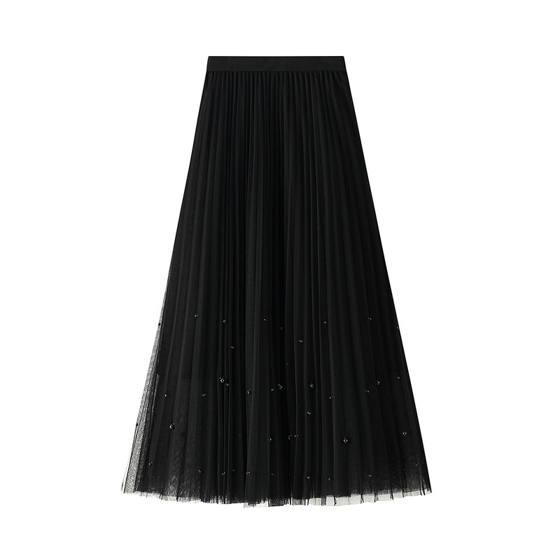 Nigikala Nigikala Industry Nail Pearl Dress Women's Half-Dress Dress 2025 Spring And Autumn Mid-Autumn Long Dress Net Yarn Dress 100Folded Dress 8581