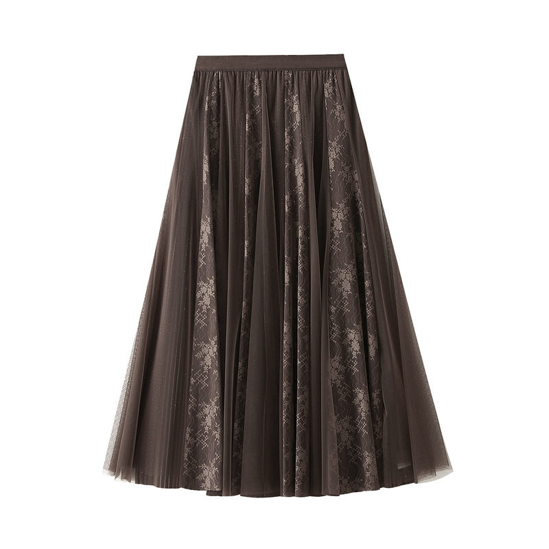 Nigikala Nigikala Lace Mesh Splicing High Waist Tight Skirt Women's Autumn Straight Two Wearing Thin Temperament Dress 9375