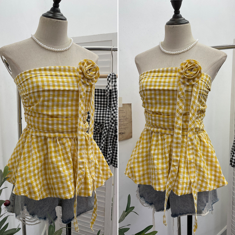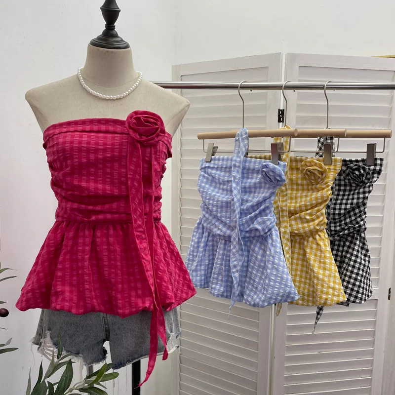 Nigikala Nigikala Lattice Tset Bra Sling Sling Vest Sleeveless T-Shirt Twive Tidal Twives Fluttering With Flower Top Woman 9232