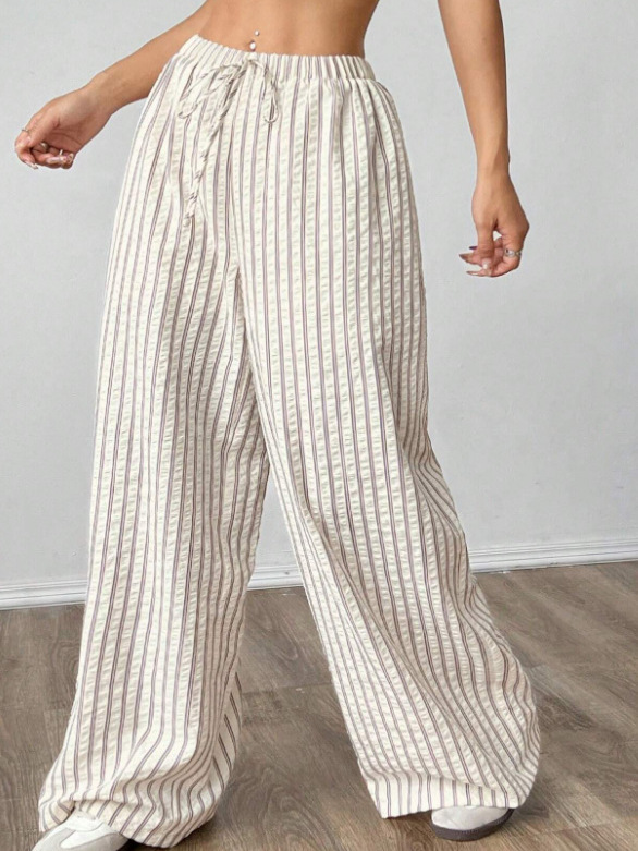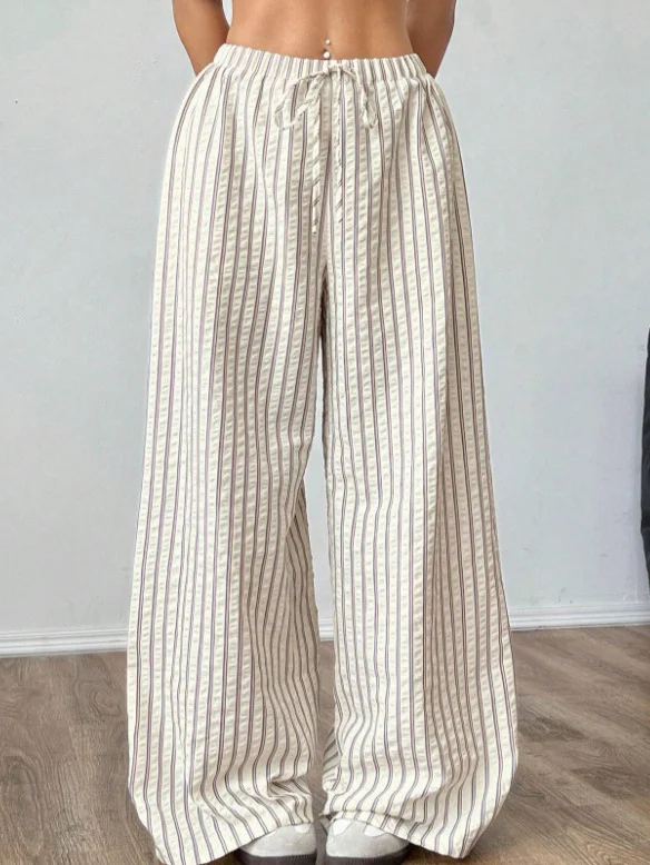 Nigikala Nigikala Loosely Tight Waist Striped Casual Straight Women's Trousers