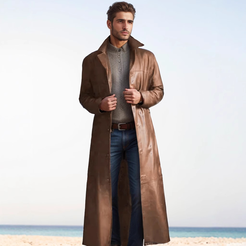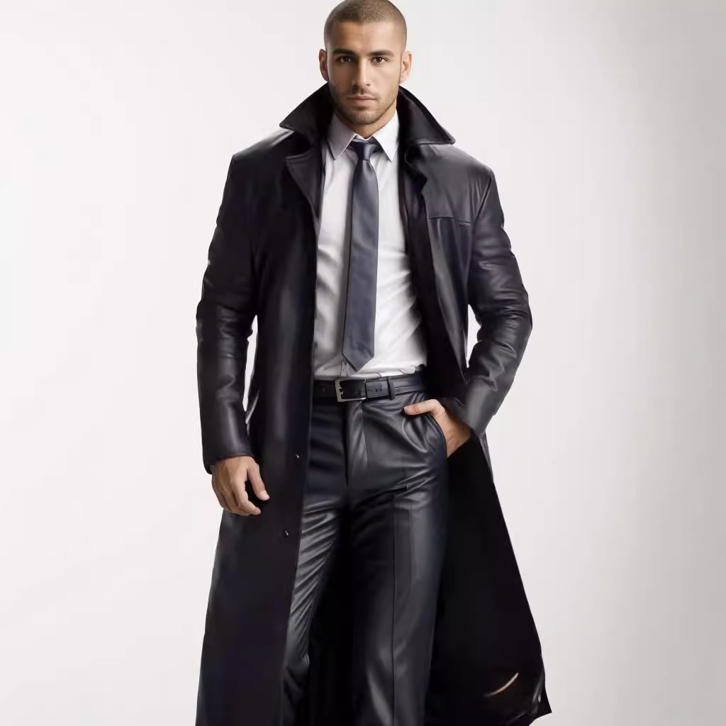 Nigikala Nigikala Men's Long-Winded Men's Fashion Plus PU Leather Jacket