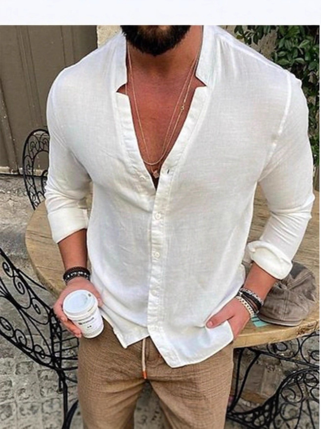 Nigikala Nigikala Men's Loose Casual V-Neck Long-Sleeved Shirt