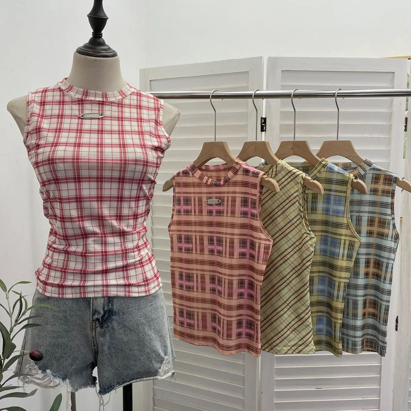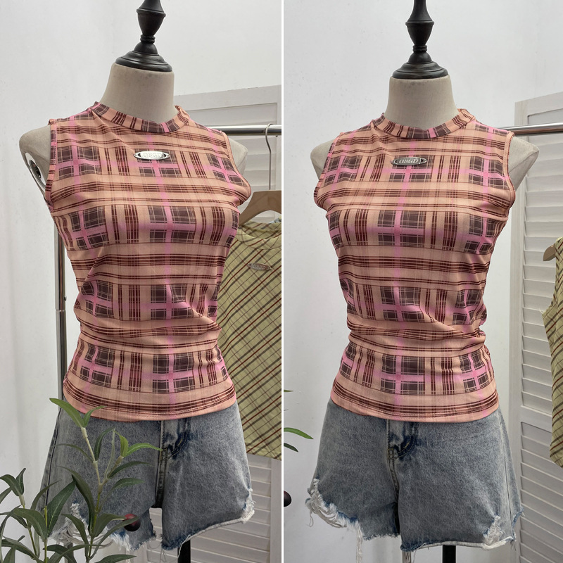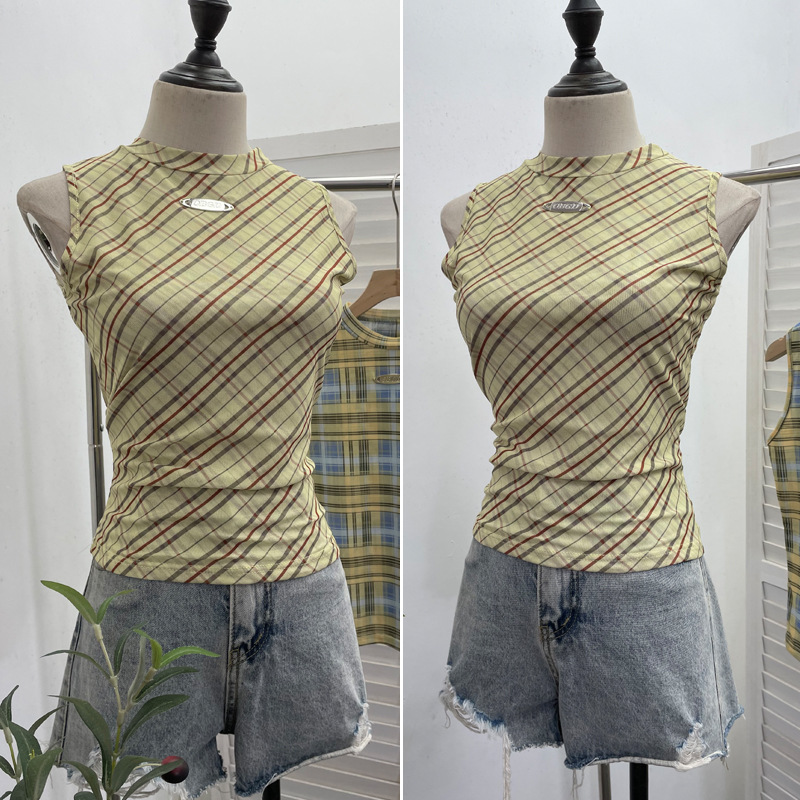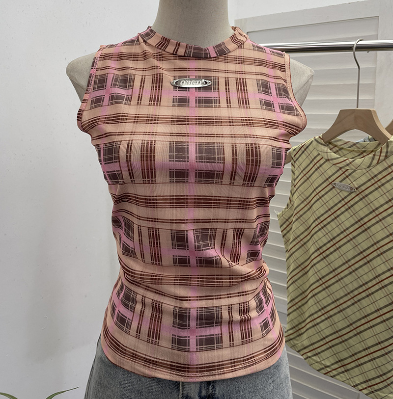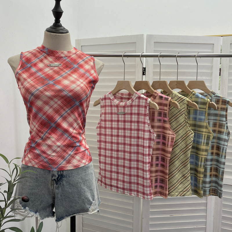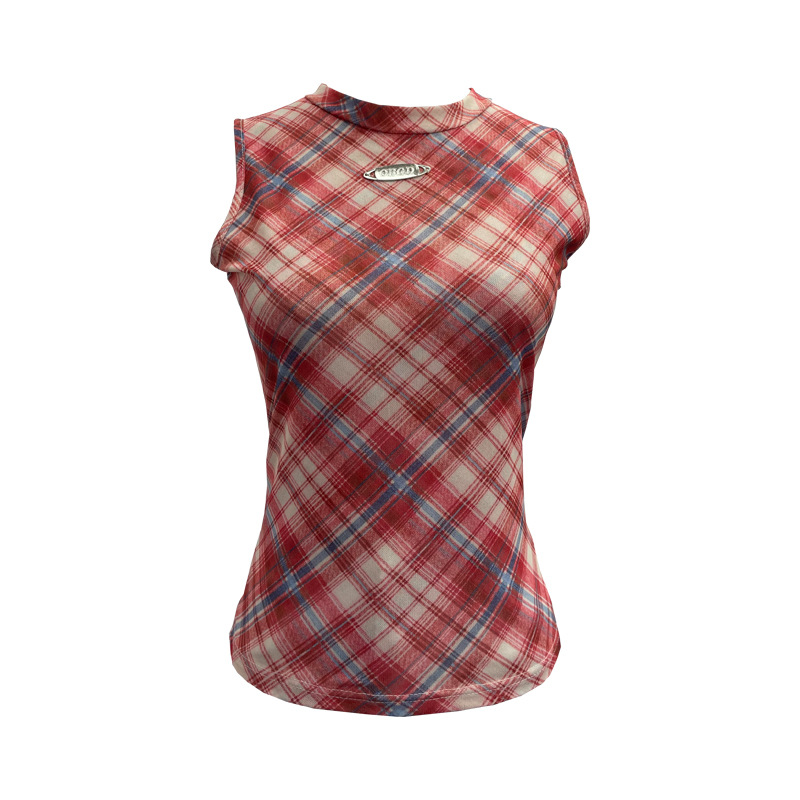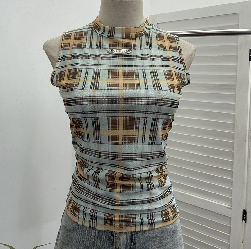 Nigikala Nigikala Mesh Vest Retro Design Slim Slimming Sleeveless T-Shirt Short Top 8036