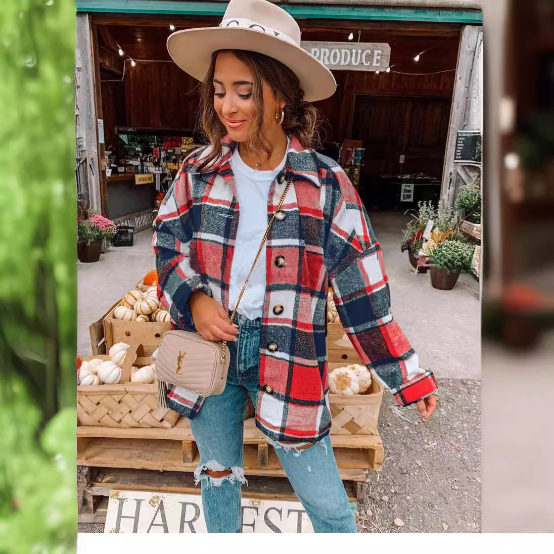 Nigikala Nigikala Net Red Autumn Street Temperament Long-Sleeved Collar Loose Women's Plaid Shirt Long Coat