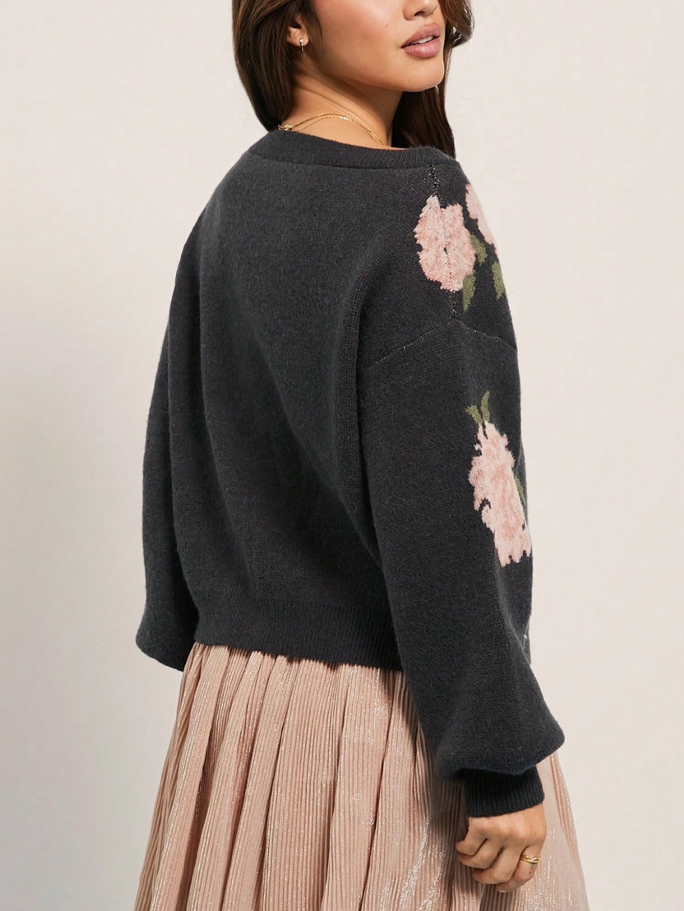 Nigikala Nigikala New Casual Long-Sleeved Sweater Flower Threaded Women's Knitting Top