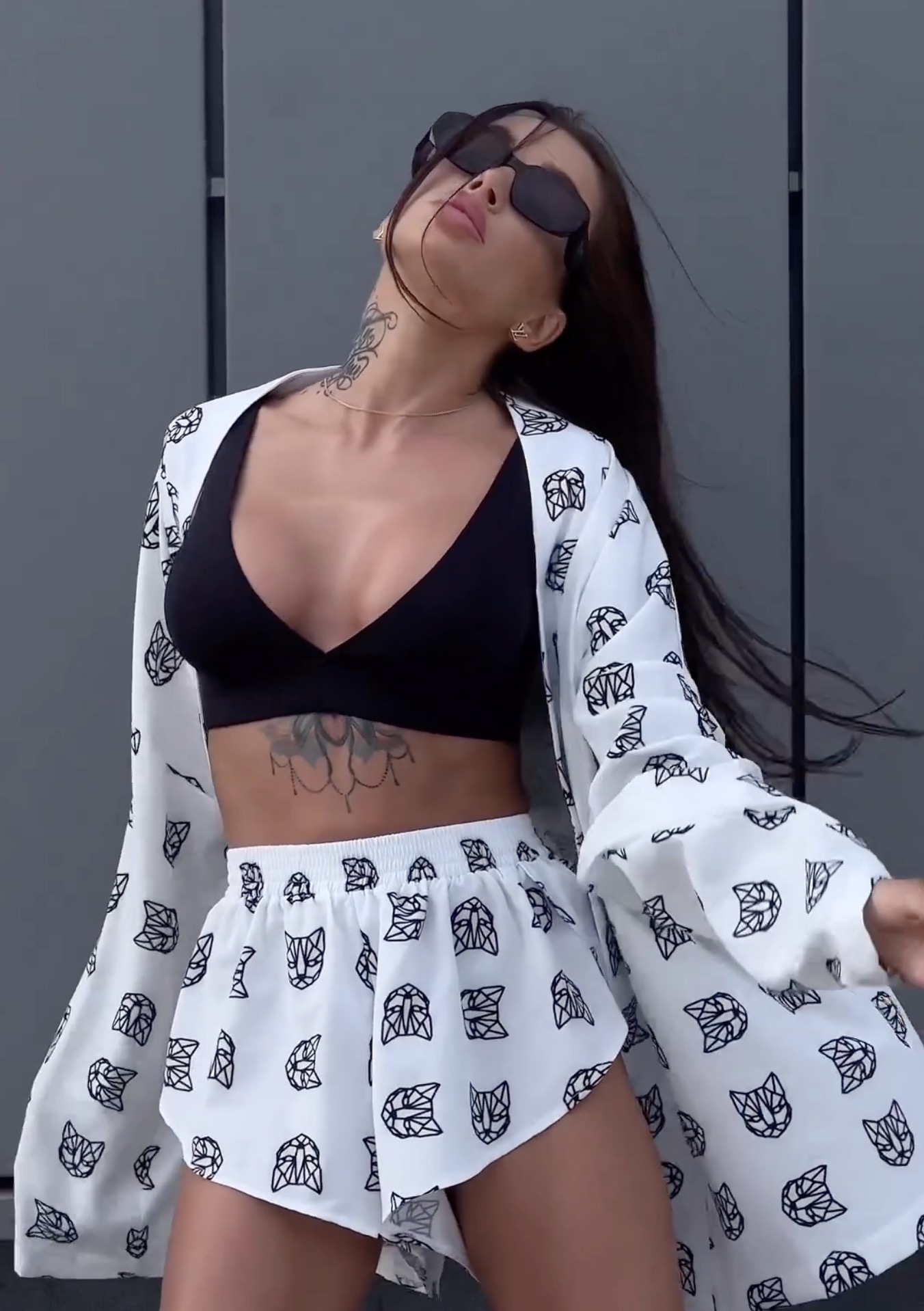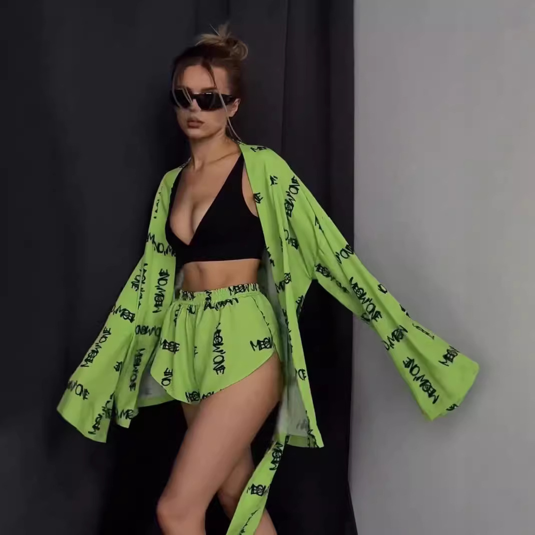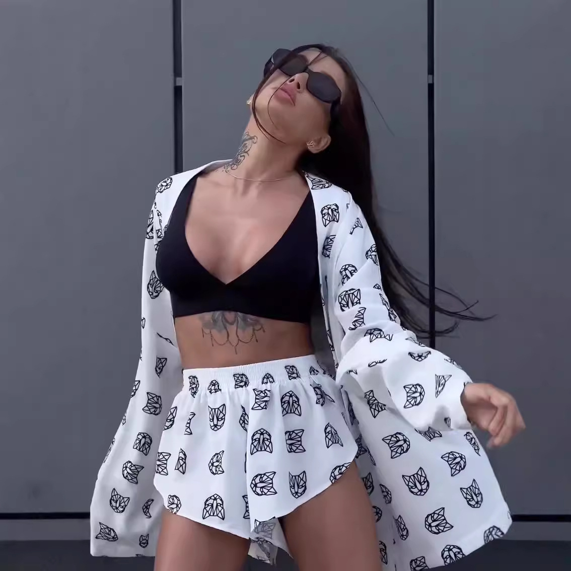 Nigikala Nigikala New Loose Long-Sleeved Women's Printed Casual Commute With Pajamas High-Waist Shorts Set
