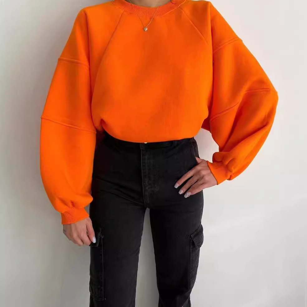 Nigikala Nigikala New Round Collar Splicing Long Sleeve Solid Color Basic Velvet Shirt