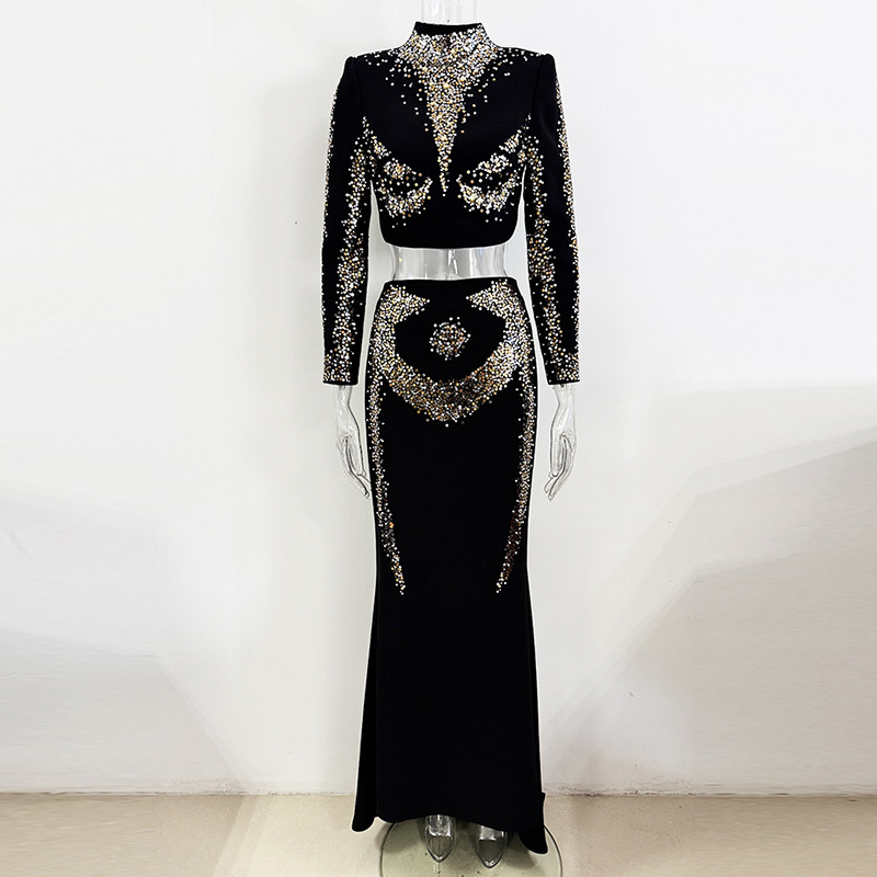 Nigikala Nigikala New Star Fashion Heavy Industry Embroidered Squin Blouse Fish Tail Half Skirt Set Two Sets