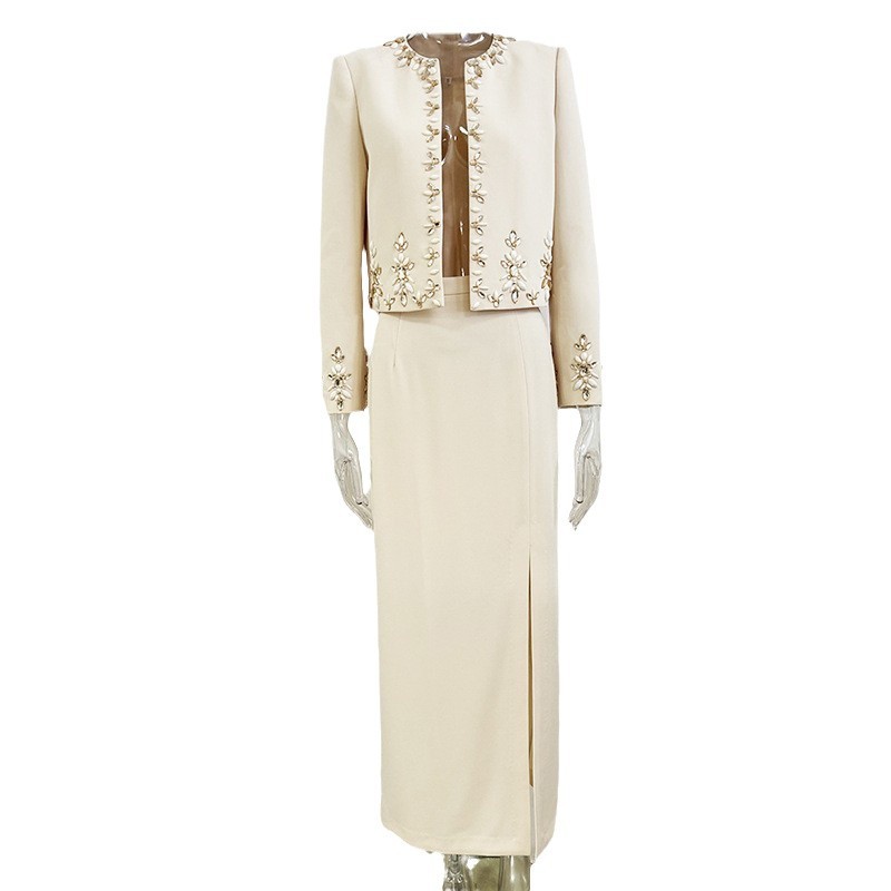 Nigikala Nigikala New Star Fashion Heavy Industry Nail Beads Jacket Open Fork Half Skirt Set Two Sets