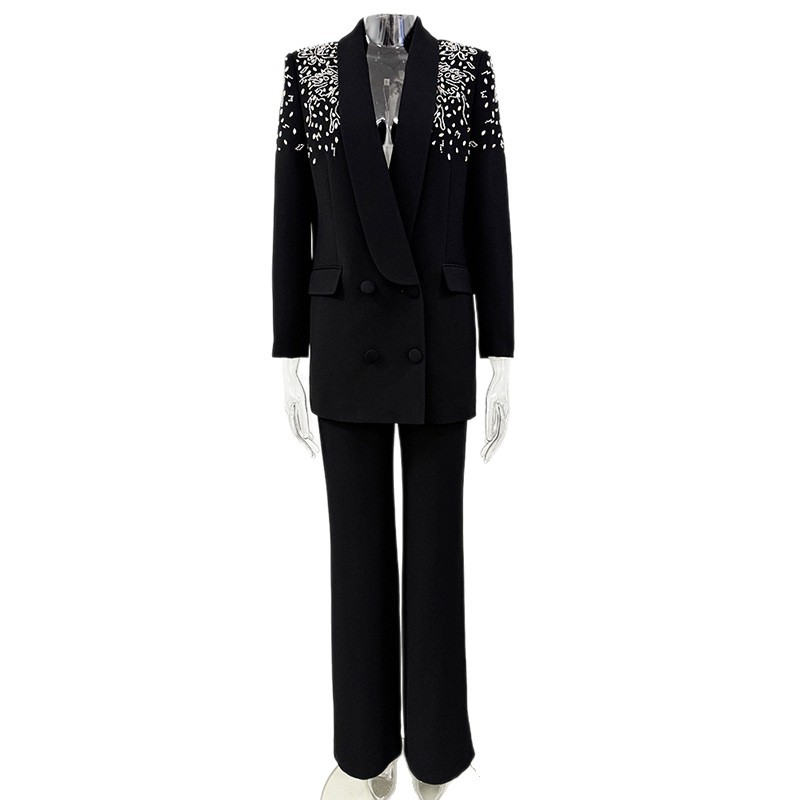 Nigikala Nigikala New Star Fashion Heavy Industry Nails And Studded Suit Jacket Trousers Set Two-Piece Set