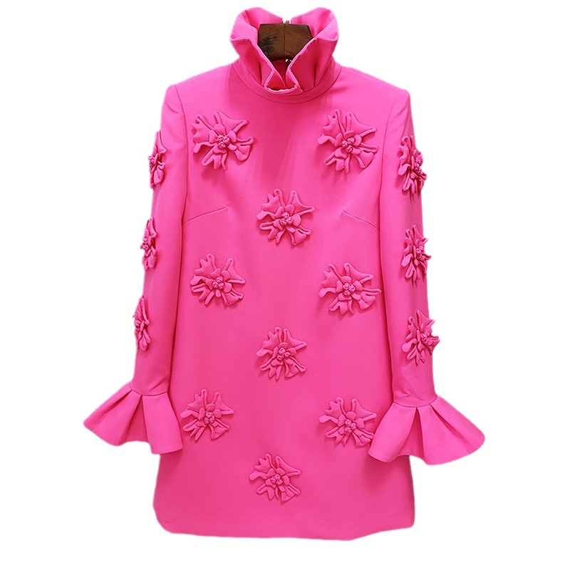Nigikala Nigikala New Star Fashion Temperament Heavyweight Three-Dimensional Flower Horn Sleeve Dress