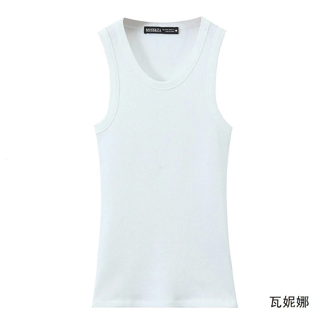 Nigikala Nigikala New Stretch Ribs Simple Sleeveless Collar Top