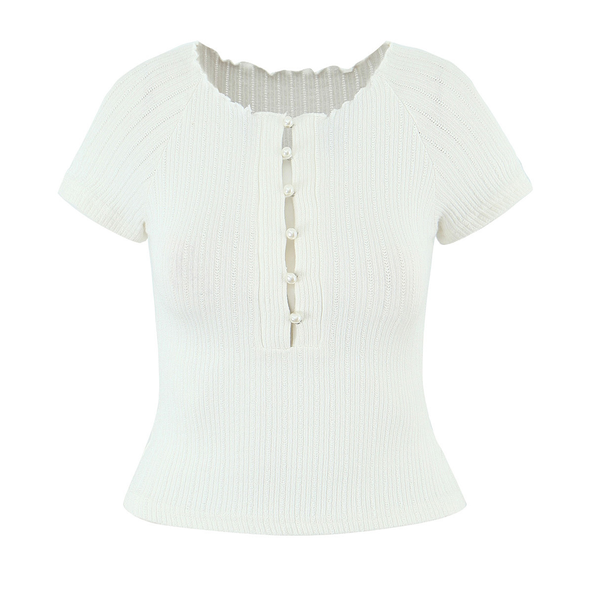 Nigikala Nigikala New Sweet Hottie Style Retro Pearl Henry Collared Shoulder Repair Small Shirt