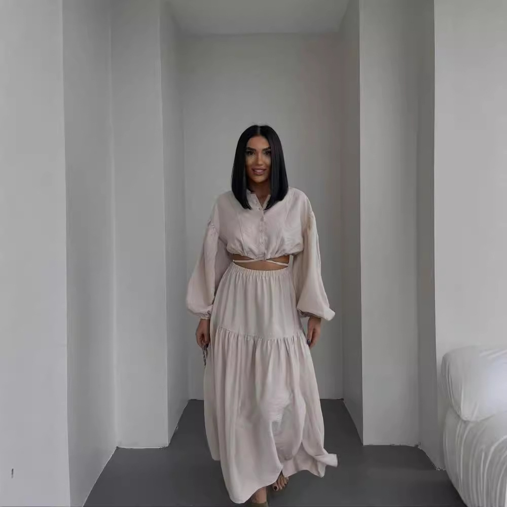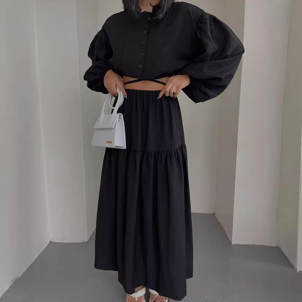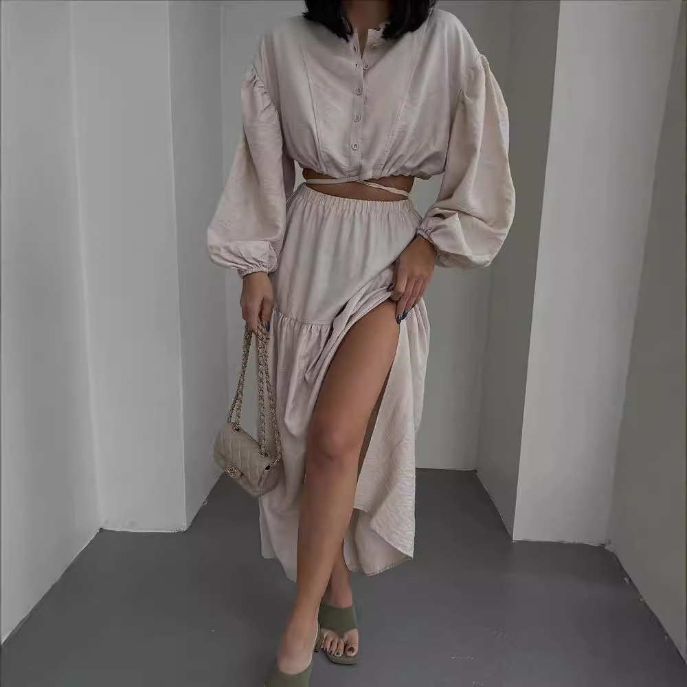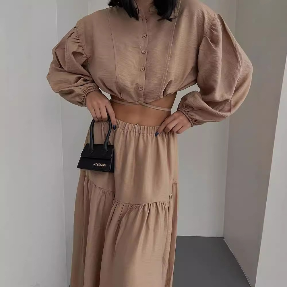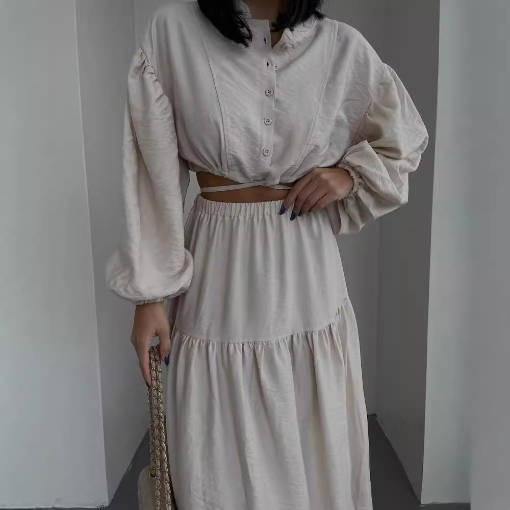 Nigikala Nigikala New With Long-Sleeved Top Folded Open Skirt Suit