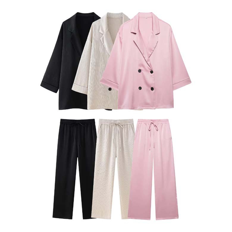Nigikala Nigikala New Wrinkled Effect Blazer Loose Casual Trousers 4387130 4387030
