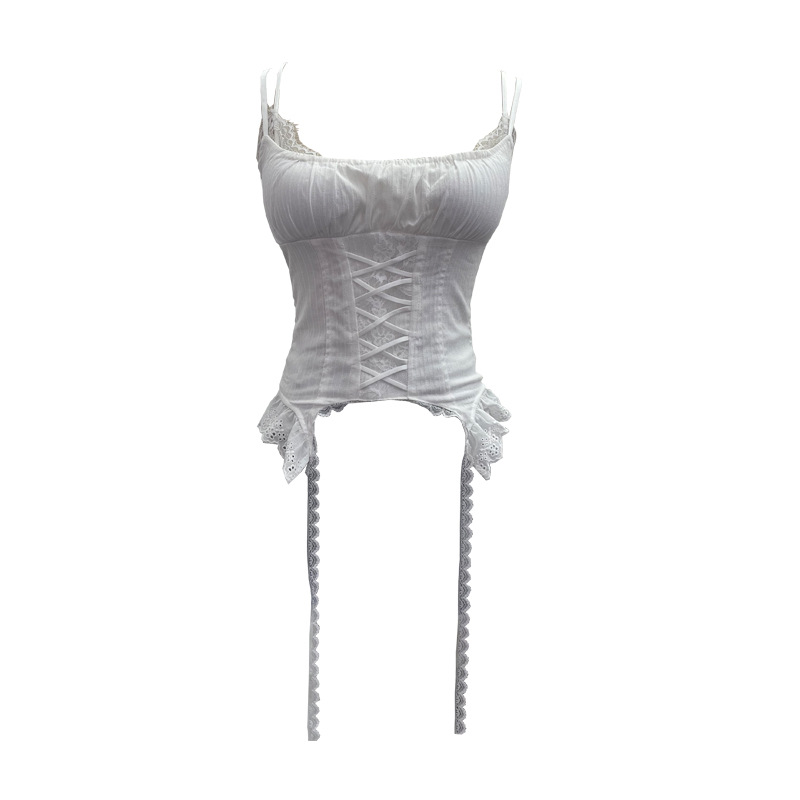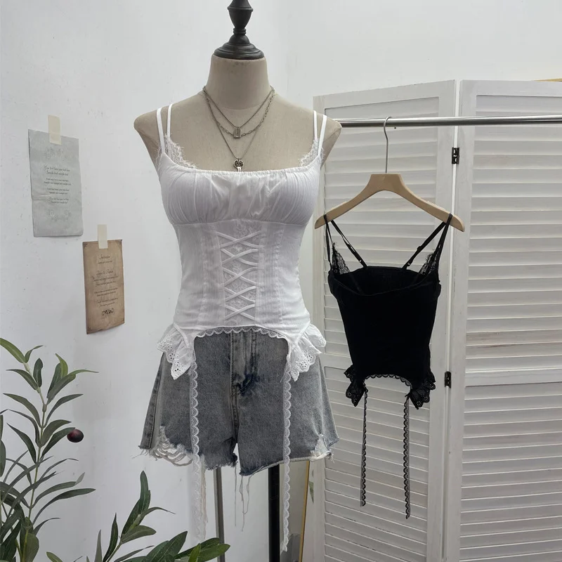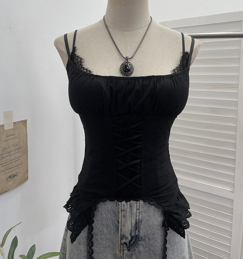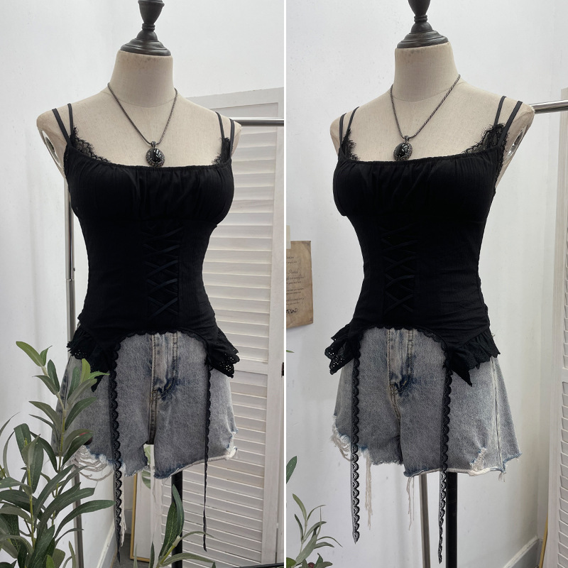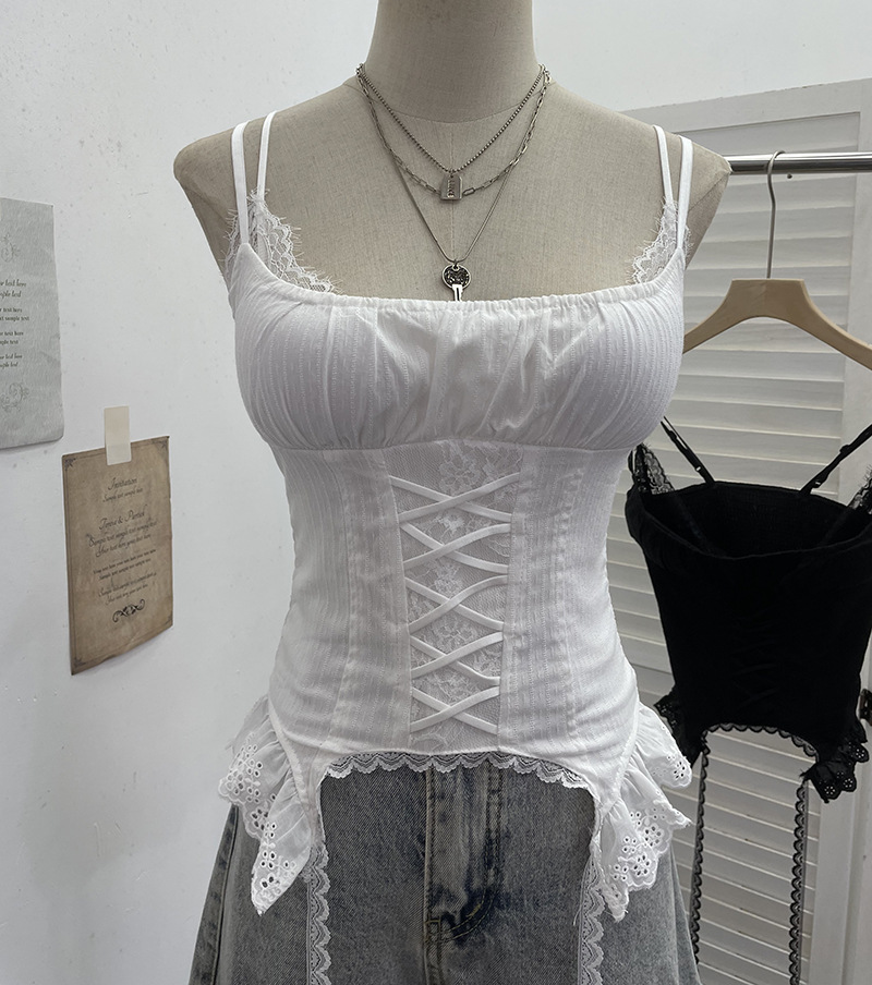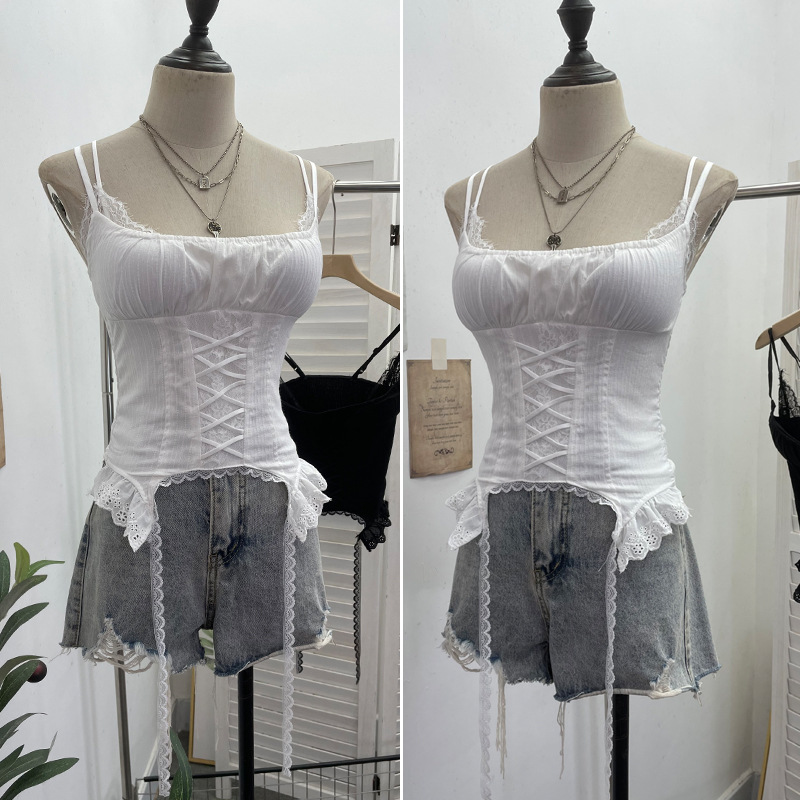 Nigikala Nigikala Outside Wearing Hottie Fake Two Splicing Lace Slings Vest Short Sleeveless Top 12282